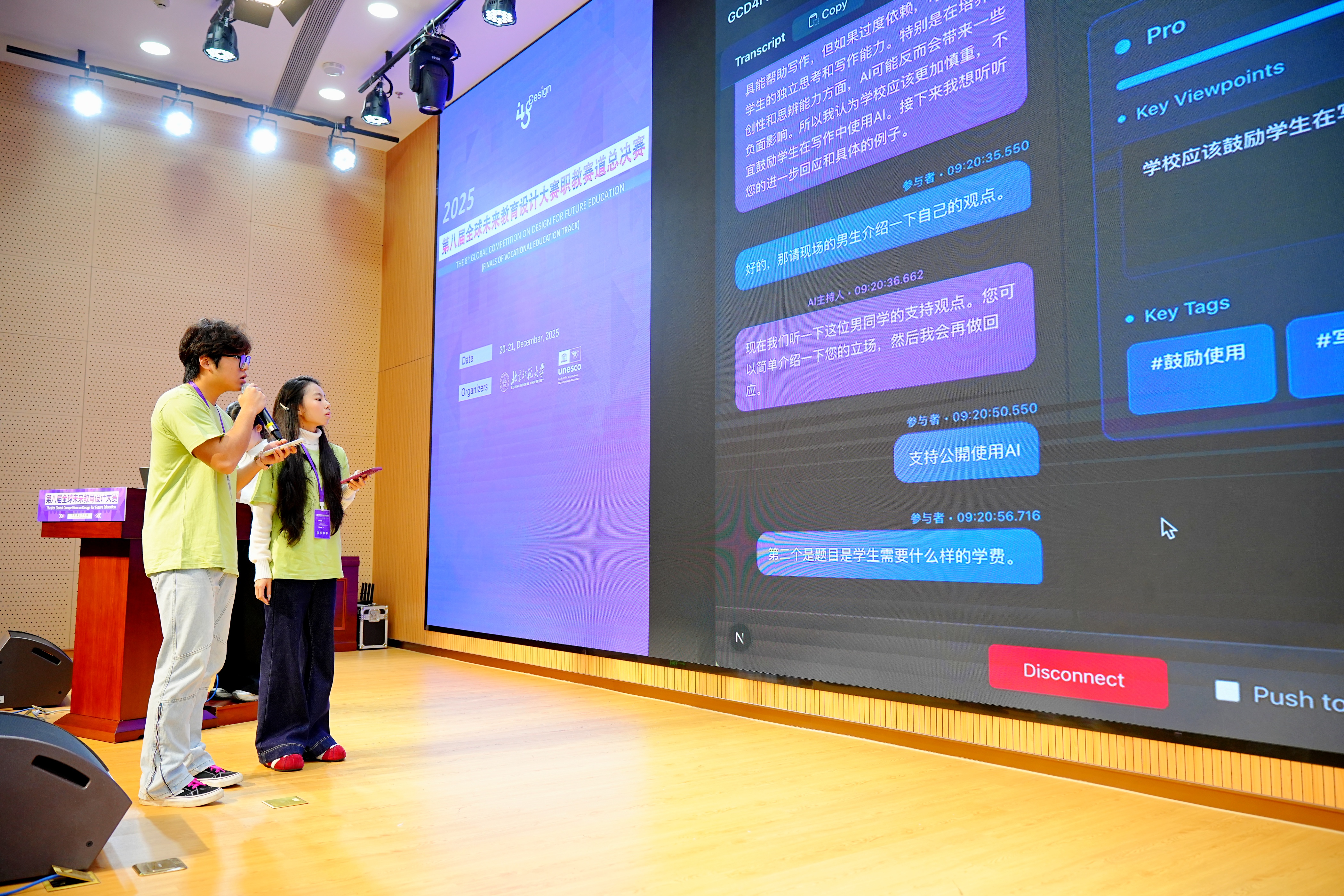 During the competition, a range of immersive experience activities was organized, highlighting frontier practices at the intersection of artificial intelligence and digital education. The opening “Human–AI Debate” attracted wide attention. Centered on the timely educational question of whether schools should encourage students to openly use AI in writing, student participants engaged in real-time exchanges with an artificial intelligence system. Through live interaction, participants directly experienced AI’s strengths in argument structuring, language generation, and rapid response, while also prompting deeper reflection on human agency and the role of humanistic values in the application of emerging technologies.