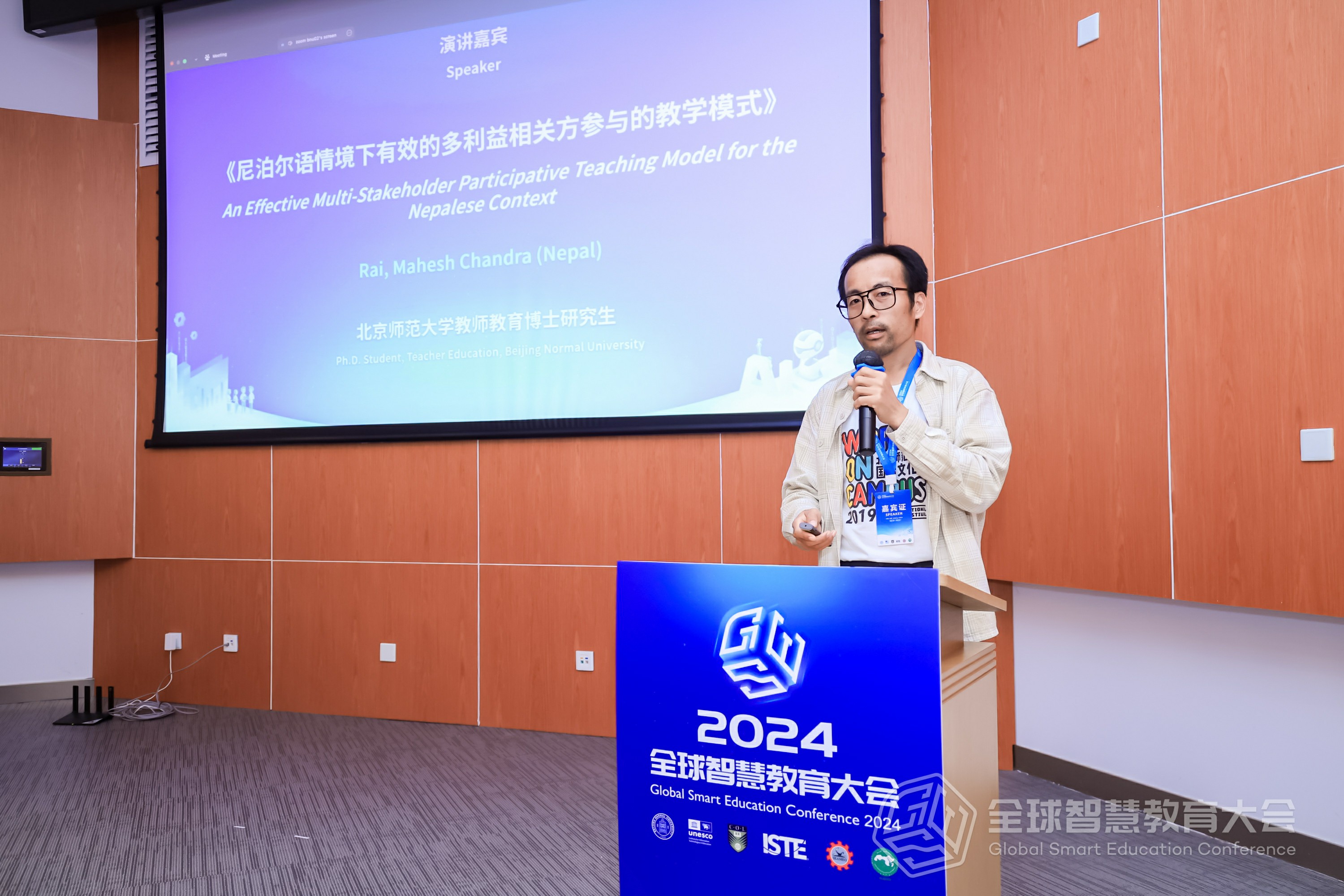 Mr. Rai, Mahesh Chandra, a Ph.D. student in Teacher Education at Beijing Normal University, highlighted challenges in the educational system in Nepal such as lack of practical opportunities and shortage of well-trained teachers. He proposed an effective multi-stakeholder participative teaching model to address the complex educational needs of Nepal by involving policymakers, school administrators, teachers, students, parents, and the broader community to support and facilitate the transfer of teacher training to classroom practices.
