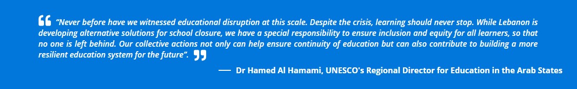 The COVID-19 outbreak has translated into a major education crisis. Nearly 190 countries have imposed school closures, affecting 1.5 billion children and young people, according to a UN report launched by Secretary-General Antonio Guterres last week. While many countries, including Lebanon, switched to distance teaching and learning to mitigate the effects of such disruption, challenges related to preparedness, infrastructure and capacity, as well as the digital gaps, have put additional strains on students, parents, teachers, principals and the educational authorities.