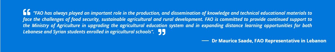 The school closures have also affected youth enrolled in vocational and technical education and training. The UN in Lebanon, with its partners, is supporting the Ministry of Agriculture (MoA) in upgrading the agriculture education system in Lebanon, which offers Lebanese and displaced Syrian youth the opportunity of acquiring necessary technical skills to access improved career opportunities in agriculture and agribusiness in Lebanon or Syria upon their return. The assistance provided by the UN and its partners also includes distance online learning for students enrolled in the Technical Baccalaureate programs (BTA) at the seven agricultural technical schools in Lebanon. Teaching Programs are posted on the Ministry’s website for students’ access at this link and taken further with schoolteachers through virtual education.