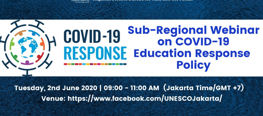 2 June 2020. UNESCO organized a sub-regional webinar on Covid-19 Education Response Policy and broadcasted through UNESCO Jakarta Facebook Live. The webinar aims to sharing the national education policies and strategies adopted or newly developed for the country’s immediate actions in order to explore strategic ways to address challenges amidst and post-situation of COVID-19 for continuity of learning for all. Around 110 participants were present the Webinar, they represented the Ministries, National Government Institutions, Education Centers, Universities, Regional Organizations, Education Experts, National Commissions for UNESCO and Schools. There were around 121,186 peopled reached and interacted through UNESCO Jakarta Facebook during and post the event.