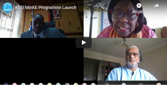 This programme was launched virtually on 15 June 2020 and was graced by the UN Resident Coordinator, Mr. Siddharth Chatterjee, the Chief Administrative Secretary in the Ministry of Education Ms. Mumina Bonaya, The Principal Secretary for the State Department of Early Learning and Basic Education, Dr. Belio Kipsang; The Principal Secretary, state department of Maritime and Shipping Affairs Ms. Nancy Karigithu, Director-General of NACOSTI, Prof. Walter Oyawa, the Senior Advisor in the Office of the President, Dr. Ruth Kagia, KICD Director Dr. Joel Mabonga, Safaricom representative Mr. Kennedy Kahura and the representative of the Secretary General of KNATCOM, Dr. James Njogu; among other key Government officials. Others who participated included the Country Director of UNWomen and representatives of UNHCR and UNICEF from the UN fraternity. Others who connected to the webinar launch included representatives of the Ministry of Education in Rwanda, MasterCard Foundation, Federation of Women Educationalists (FAWE) and Microsoft. A total of 118 participants joined the webinar for the launch of the UNESCO/GoK Digital STEM Mentorship Programme.