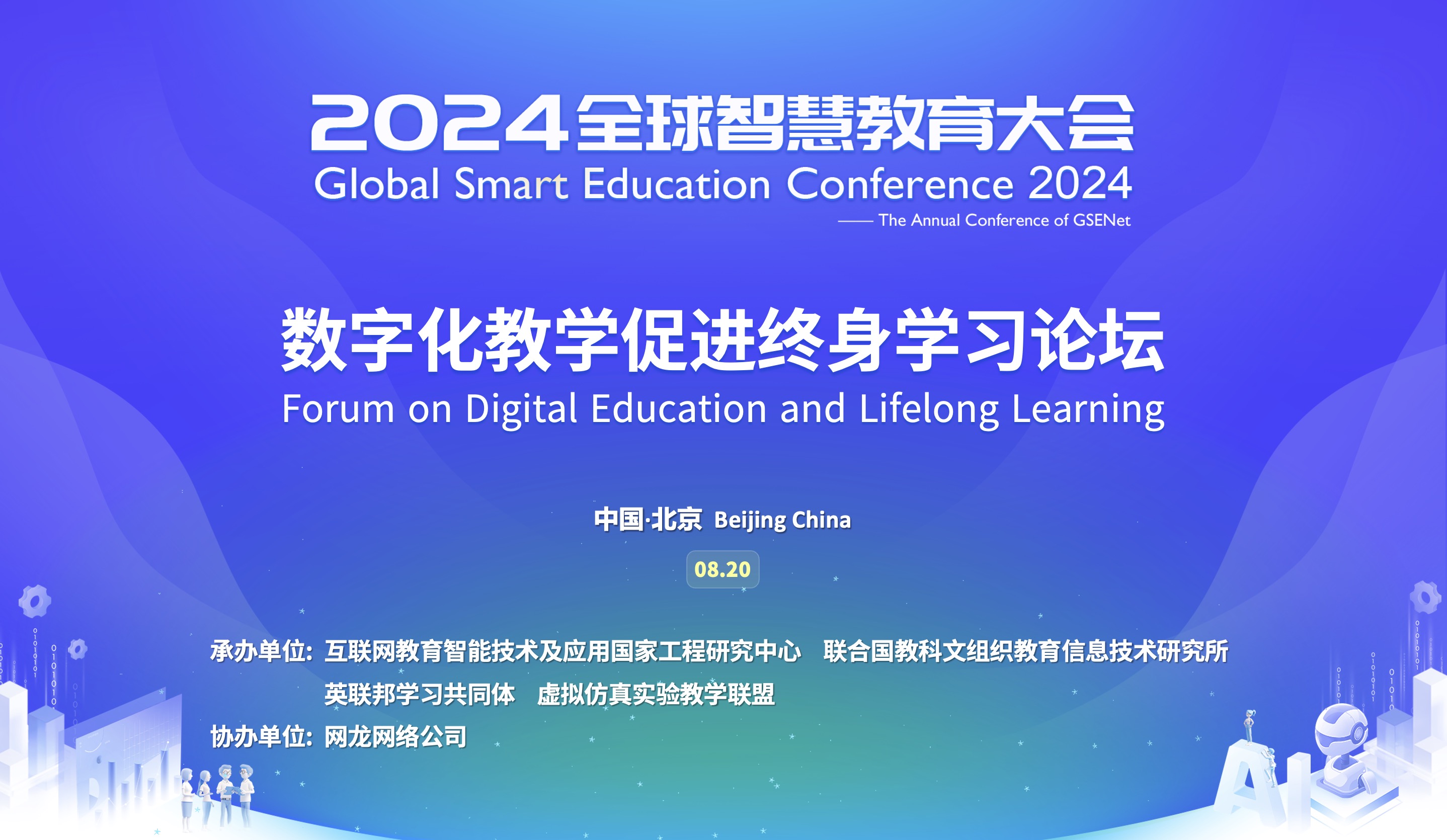8月20日下午,由互联网教育智能技术及应用国家工程研究中心、联合国教科文组织教育信息技术研究所、英联邦学习共同体、虚拟仿真实验教学联盟共同承办,网龙网络公司协办的“数字化教学促进终身学习”论坛在北京师范大学成功举办。本论坛作为2024全球智慧教育大会的活动之一,主要探讨了新技术迭代演进与智慧学习环境,数字化转型与学习资源的创新应用,数字时代的学习规律与数字教学法,实验教学数字化资源、教材与装备以及全民终身学习与学习型社会建设等。