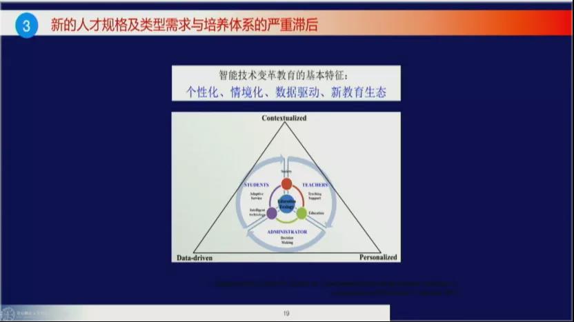 黄院长从教育与科技的历史交汇点入手,论及了科技赋能教育的历史命题及科技引领教育变革的关键议题等。