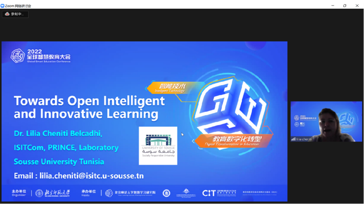 突尼斯苏塞大学教授Lilia Chniti带来了题为Towards Open Intelligent and Innovative Learning的报告。她指出技术可以促进学习者的学习也可以应用于教育评价。她提出了一个“混合学习框架”,包括教与学的实践、资源(内容)、评价、教师能力发展和全纳设施等要素。Lilia Chniti教授还从资源、学习者和教师三个维度阐述了人工智能与教育的融合。