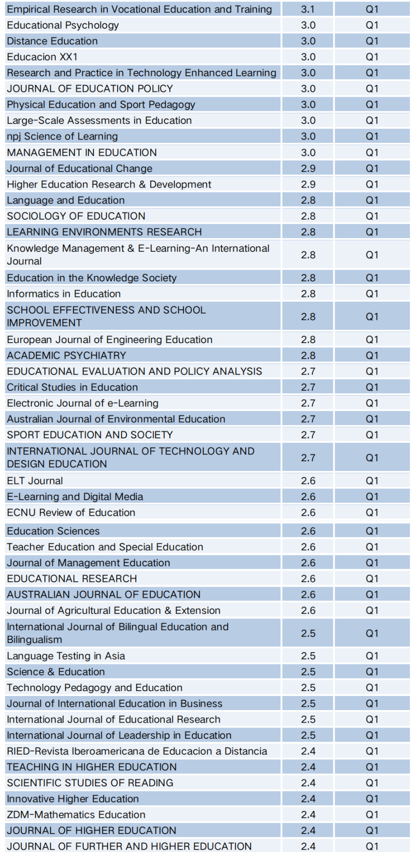 附件:2025年JCR期刊影响因子教育学排名