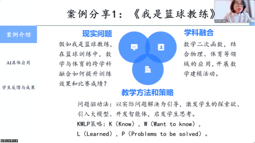 在跨学科学习活动中,AI不仅是知识传递的工具,更成为教师活动设计与教学实施的重要伙伴。活动设计的初期,AI技术协助制定初步方案,并在教学过程中提供实时数据分析和调整建议。以篮球教练的主题活动为例,AI帮助实现了数学与体育的互动学习,加强了学生的实践能力和学习效果。在课堂上,AI大模型引导学生提出问题,优化学情分析,助教智能体则为学生定制个性化学习资源,提升建模效率,整体优化了学习过程。