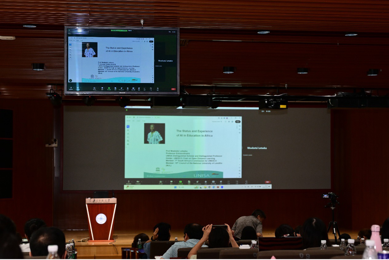 联合国教科文组织开放远程学习教席主持人,南非大学教授莫埃凯西·莱塞卡(Moeketsi Letseka)以“人工智能在非洲教育中的现状和经验”为报告题目,展示了UNESCO 和非洲在人工智能与教育领域的相关政策和举措,强调了各方应在推动人工智能在教育中应用中协同和不懈努力。