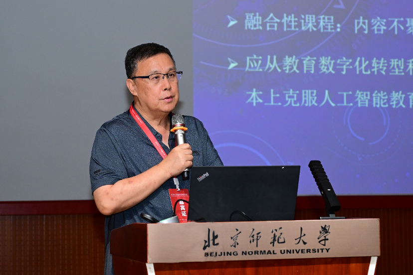 赵建华以“国际比较研究视域下的信息科技教育:经验与启示”为主题,分析了人工智能时代的背景特征,并回顾了AI的技术进展。他指出,目前各国均高度重视人工智能教育。一线教师需要跳出“教学”视角,考虑“课程”全局;从服务国家战略的角度,提升学生数字素养,强化职业素养渗透;课程内容需要纳入人工智能、科学教育等内容,增强与真实世界的联系;课程实施方面,应注重主动学习,推动学科教学实践创新,加强实验室建设和科技创新竞赛,构建系统性评价体系,融合多重评价维度,创新测评方式与手段,加强基于真实情境的表现性评价。