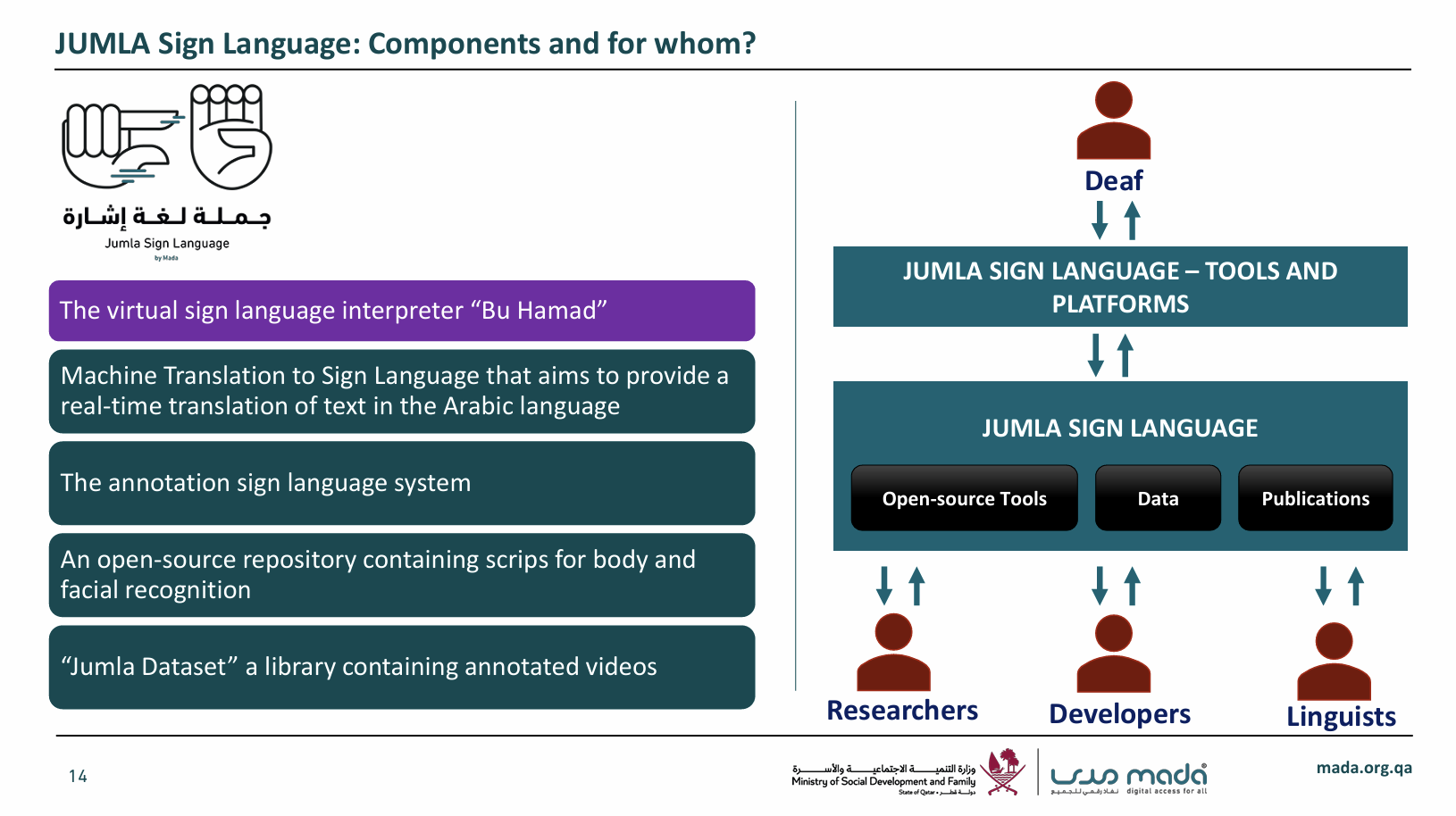 卡塔尔玛达辅助技术中心创新与研究部门主任阿什拉夫·奥斯曼(Achraf Othman)以所在单位的创新成果和研究项目为例,探讨了残疾儿童的包容性问题。阿什拉夫·奥斯曼首先介绍了卡塔尔玛达辅助技术中心的基本情况,随后重点阐释了“玛达创新计划”,并向与会者展示了JUMLA手语聊天机器人以及为自闭症群体设计的飞行旅程模拟实验室等研究成果。