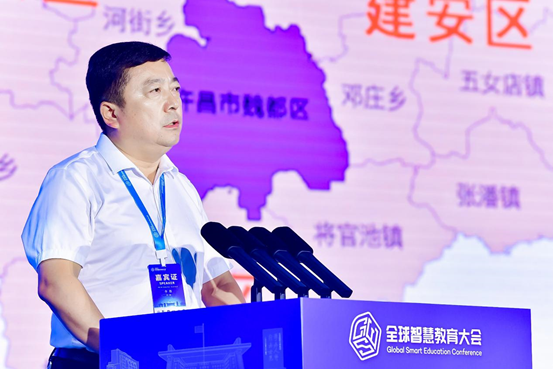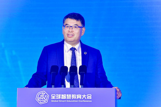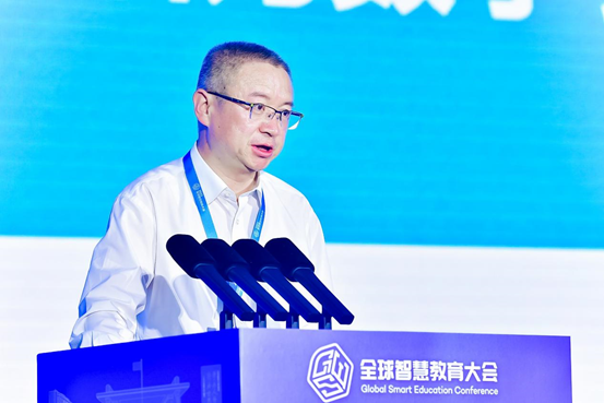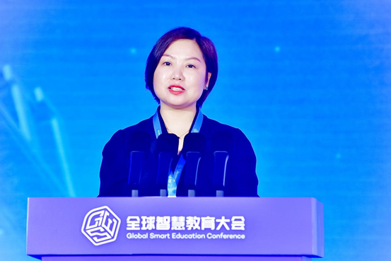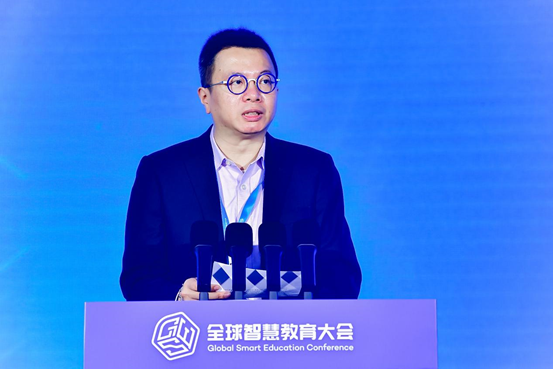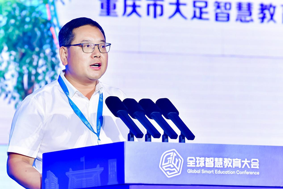 重庆市大足区教育局局长石朝勇分享了大足区智慧教育发展的经验。“大足区在教育数字化转型背景下,通过开创“周末名师课堂、名师综合课堂、名校网络课堂、专递课堂”等四个课堂,建设大足优质教育资源新高地;通过实施学习支持环境构建行动、教育评价改革完善行动、优质教育资源共享行动等举措,构建泛在可及、智慧便捷、公平普惠的智慧教育服务体系。”石朝勇说。