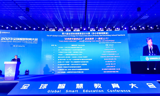 论坛期间还颁发了第六届全球未来教育设计大赛(中小学教师赛道)优秀教学案例设计的获奖成果,全球未来教育设计大赛指导委员会主席陈光巨教授代表组委会公布了获奖名单。据悉,大赛自2023年3月1号启动以来,共吸引了2000多名中小学教师报名参加,共收到1500余份作品,最终评选出三等奖43个、二等奖24个、一等奖11个。任友群司长和展涛所长共同为获奖教师颁奖。