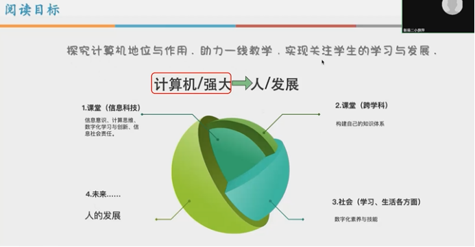 张香玲老师从阅读目标为始逐步展开自己的阅读感悟。张老师抓住了“因计算机而强大”的“强大”字眼。计算机技术不断发展和应用,对人们的生产生活和思维方式都影响深远,计算机因“强大”而破圈。张老师强调“学习怎样学习(Learn To Learn)”的重要性。未来拥有不确定性,我们需要教会后代如何生存、如何学习,这才是教育教学最根本的东西,让孩子更好地适应未来。