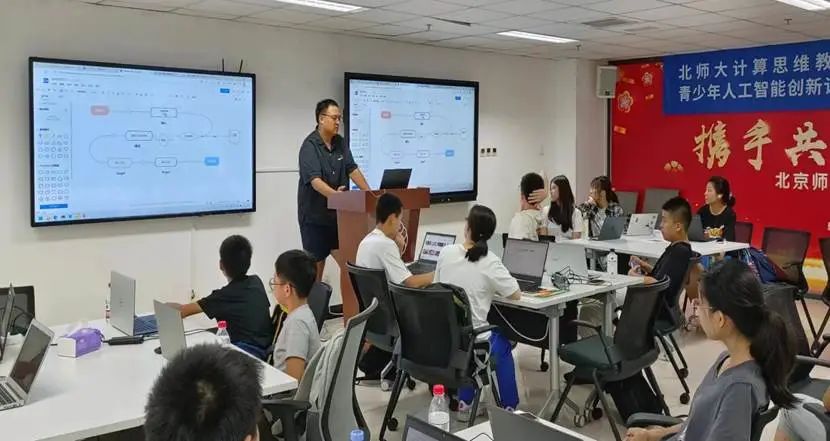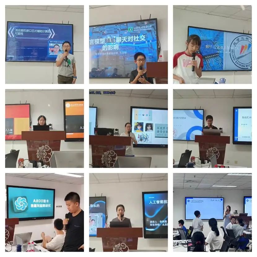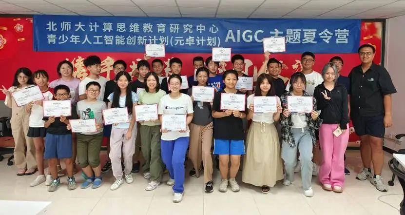 8月14日至15日,由北京师范大学计算思维教育研究中心与北京师范大学青少年人工智能创新计划(元卓计划)联合发起的AIGC学生暑期夏令营在北京师范大学智慧学习研究院举办。本次夏令营以AIGC为主题,包含大语言模型体验与实践、AI生成音视频体验、AI辅助调查研究与写作等环节,以及计算思维活动、AR编程体验活动,为青少年提供了了解和体验前沿人工智能技术的机会,激发了同学们对科技创新的热情,共有来自人大附中、北师大附中、清华附中、北京市101中学、挪威奥勒松中学等多所学校的30余名初高中学生参加。