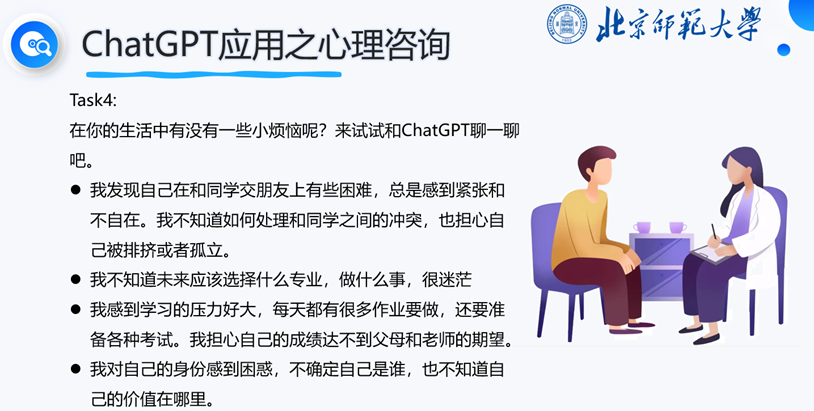 8月14日上午,AIGC学生暑期夏令营拉开序幕。首先,曹舒旻老师从“什么是AIGC”、“什么是ChatGPT”、“人工智能大语言模型有哪些”三个方面向同学们讲述了AI的相关知识。而后,助教演示任务,带领同学们与ChatGPT展开深入互动,包括故事编写、虚拟角色设计、英语学习、心理咨询、编程学习等活动。同学们深入体验了人工智能的多面应用。