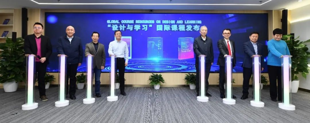 由北京师范大学智慧学习研究院发布的“设计与学习”国际课程成为本届学术周的亮点。这套成果包括一本面向高等教育的中文教材《设计与学习》,一本由国内外专家共同编著的英文书籍“Envisioning the Future of Education Through Design”,以及一门基于AI技术开发的新型慕课《设计与学习》。教育部高等教育司课程教材与实验室处处长刘永强,北京设计学会创始人、民盟中央文化委员会副主任宋慰祖,北京师范大学副教务长周亚,北京师范大学教育技术学院院长武法提,北京师范大学出版集团副总编辑栾学东,北京师范大学智慧学习研究院联席院长、网龙网络公司董事长刘德建,北京师范大学智慧学习研究院联席院长黄荣怀,北京师范大学智慧学习研究院副院长陈长杰共同为成果揭幕。