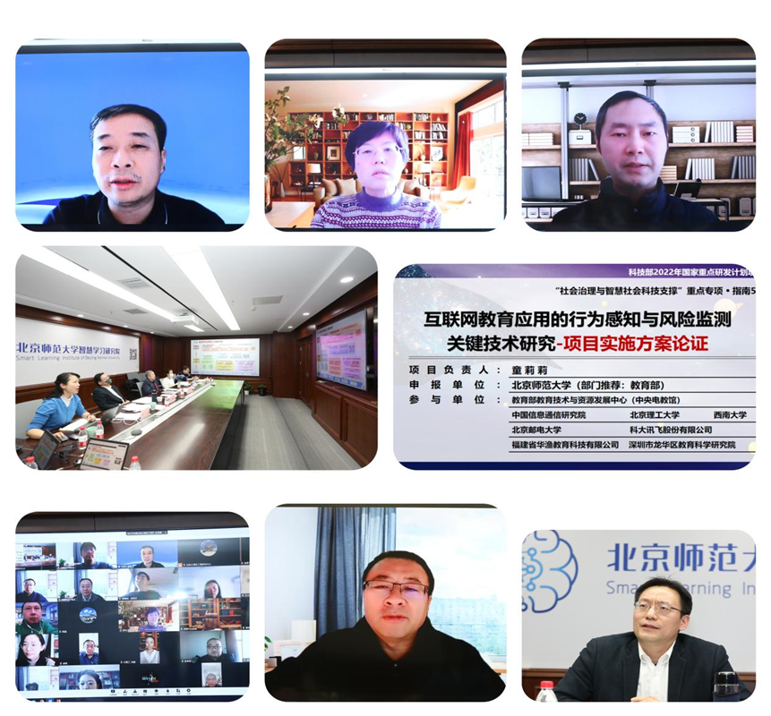 12月24日,北京师范大学牵头承担的2022年度国家重点研发计划项目“互联网教育应用的行为感知与风险监测关键技术研究”(项目号:2022YFC3303500)实施方案论证暨启动会以线下线上相结合的形式召开。本项目由北京师范大学教育学部、互联网教育智能技术及应用国家工程研究中心童莉莉副教授主持,联合了教育部教育技术与资源发展中心(中央电化教育馆)、中国信息通信研究院、北京理工大学、西南大学、北京邮电大学、福建省华渔教育科技有限公司、科大讯飞股份有限公司、深圳市龙华区教育科学研究院共9家单位承担。会议由北京师范大学科研院林小鹃副处长主持。