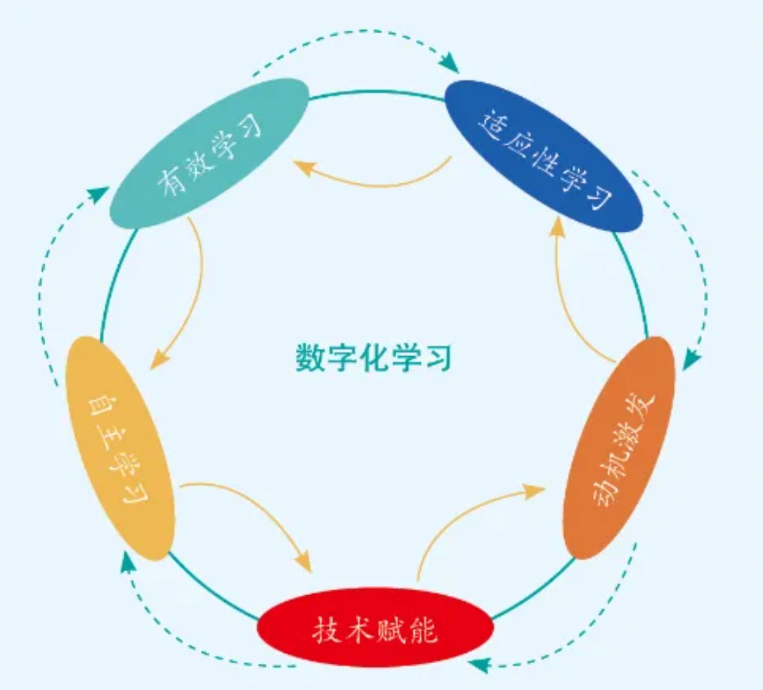 第五,“自主学习”是数字化学习的关键,强调个体的自我效能感与主观能动性,通过自我计划、自我决策、自我监控、自我管理、自我评价等一系列行为,主动维持和优化学习状态。