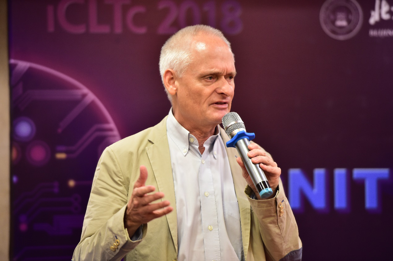 Chee-Kit Looi教授的报告题为《When Mobile Learning meets Cognitive Load Theory》,他介绍了自己关于移动学习活动的研究和设计,并认为进一步研究的一个重要挑战在于如何将认知负荷理论融入到移动学习设计以及无缝学习当中去。