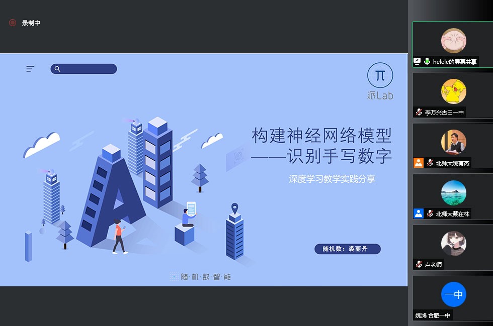 随机数智能的裘雅丹老师以青少年人工智能教学中典型应用——识别手写数字为例,介绍了构建神经网络模型的项目式教学案例。裘老师分别从情景导入、实验演示、实验要点介绍、实验过程示例、实验总结等方面,分享了如何运用项目式一体化教学模式进行人工神经网络模型搭建、 Tensorflow库调用、深度学习算法应用等内容的教学。
