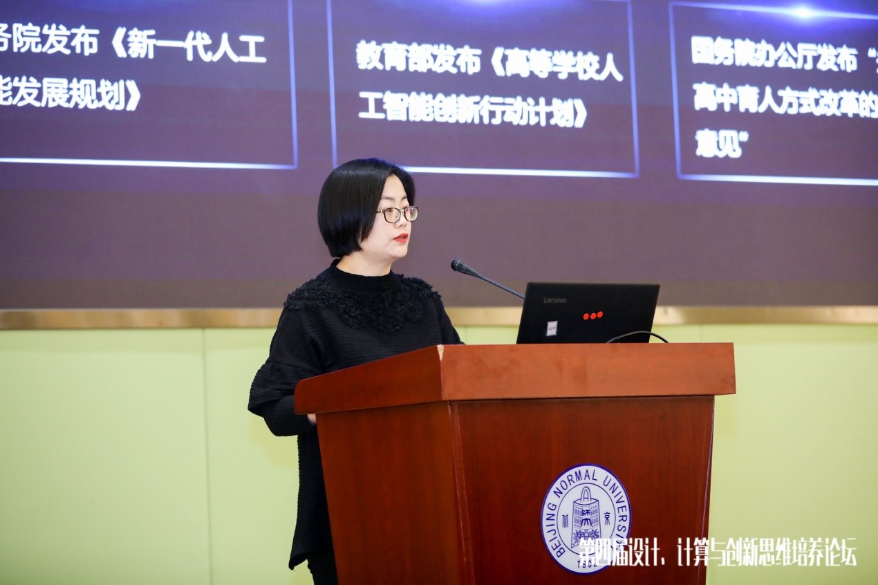 在主题报告环节,北京邮电大学计算机学院副教授王晓茹带来题为“计算思维的培养和训练”的报告,详细介绍了计算思维的进化历程、AI赋能新型教育格局、传统的认知方式的改变,指出计算思维需要依赖个人和学校的双渠道培养,并在实践中不断提高解决问题的能力。