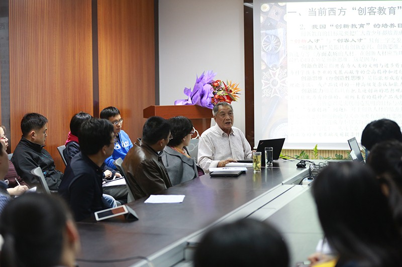 3月21日晚,北京师范大学现代教育技术研究所所长何克抗教授做了主题为“创立中国特色创客教育体系——教育试验区建设-跨越式试验区发展经验”的学术讲座。何克抗教授从当前西方“创客教育”存在的缺陷以及我国“创客教育”的实施状况谈起,希望大力倡导与推行中国特色的“创客教育”,最后介绍了中国特色“创客教育”的实施办法。