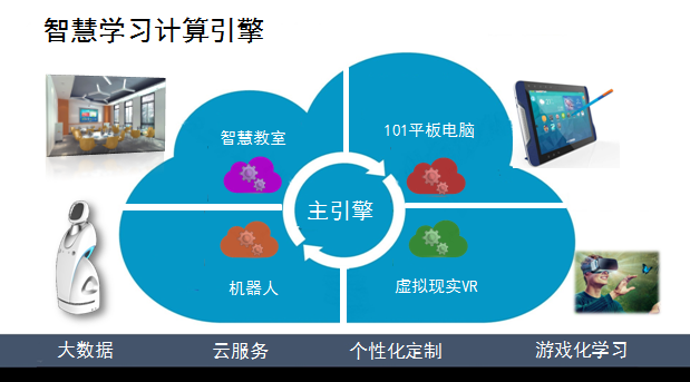 智慧学习研究院研发的智慧学习计算引擎,是基于大数据和云服务开发和部署智慧学习系统的智能化核心组件,该组件具备高感知性、高适应性、高集成性和高自动化的特征,智慧学习系统包括教育机器人、智慧教室、智能学习机和智能玩教具等。智慧学习计算引擎基于当前热门的有无线传感器技术、学习情景识别技术、学习者建模等技术,通过传感器获取学习环境和用户数据,识别学习者特征、学习状态和学习情境,然后计算学习过程、知识路径,从而个性化向学习者推送学习资源和学习策略,并依据共性需求和个体差异,针对个人做出连续性与预测性的评价。该引擎核心功能包括识别与分析,计算与推理,推送与推荐,它能够将具有不同功能的系统进行组装,面向不同的人、不同的终端、不同的平台、不同的情境提供不同的服务。