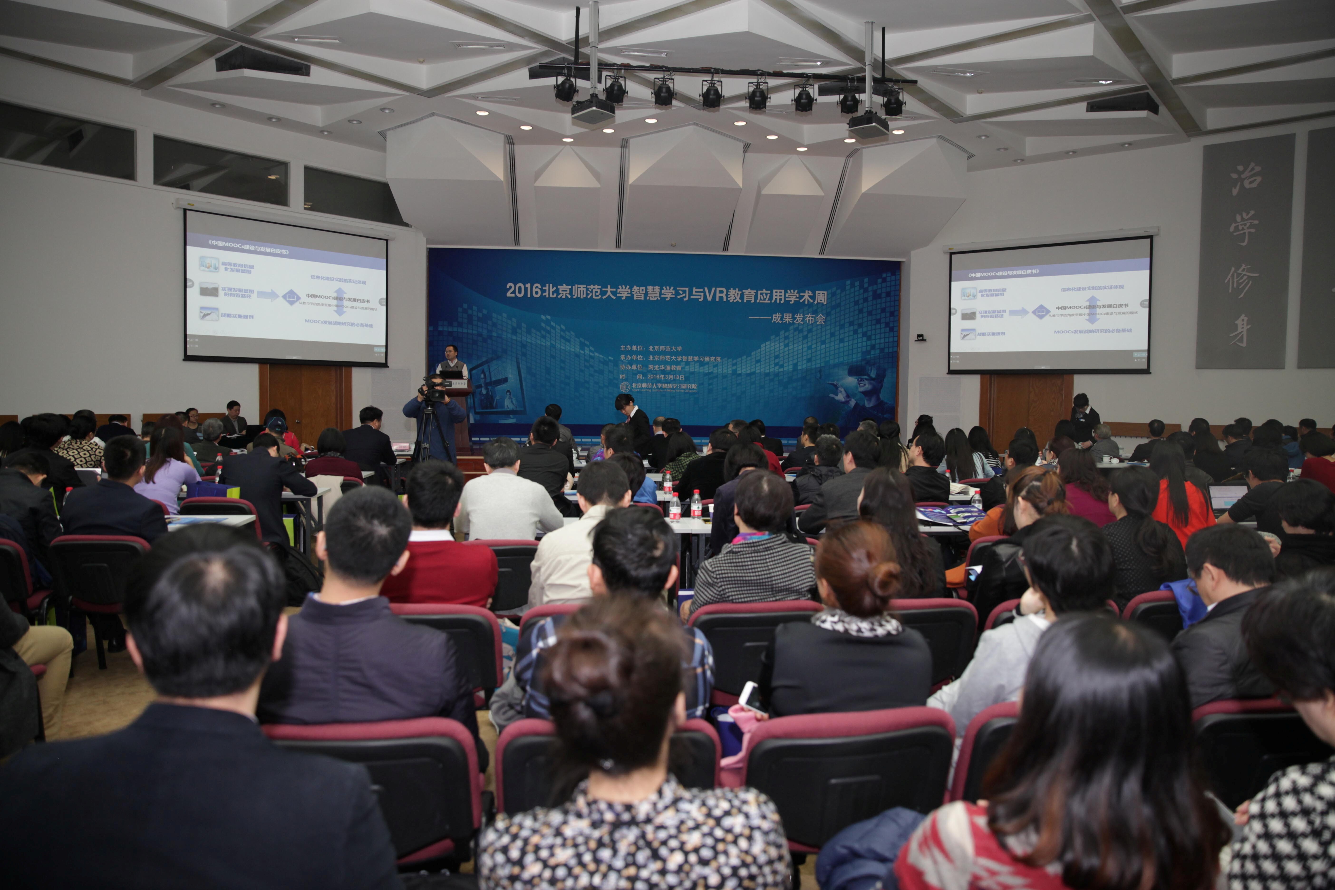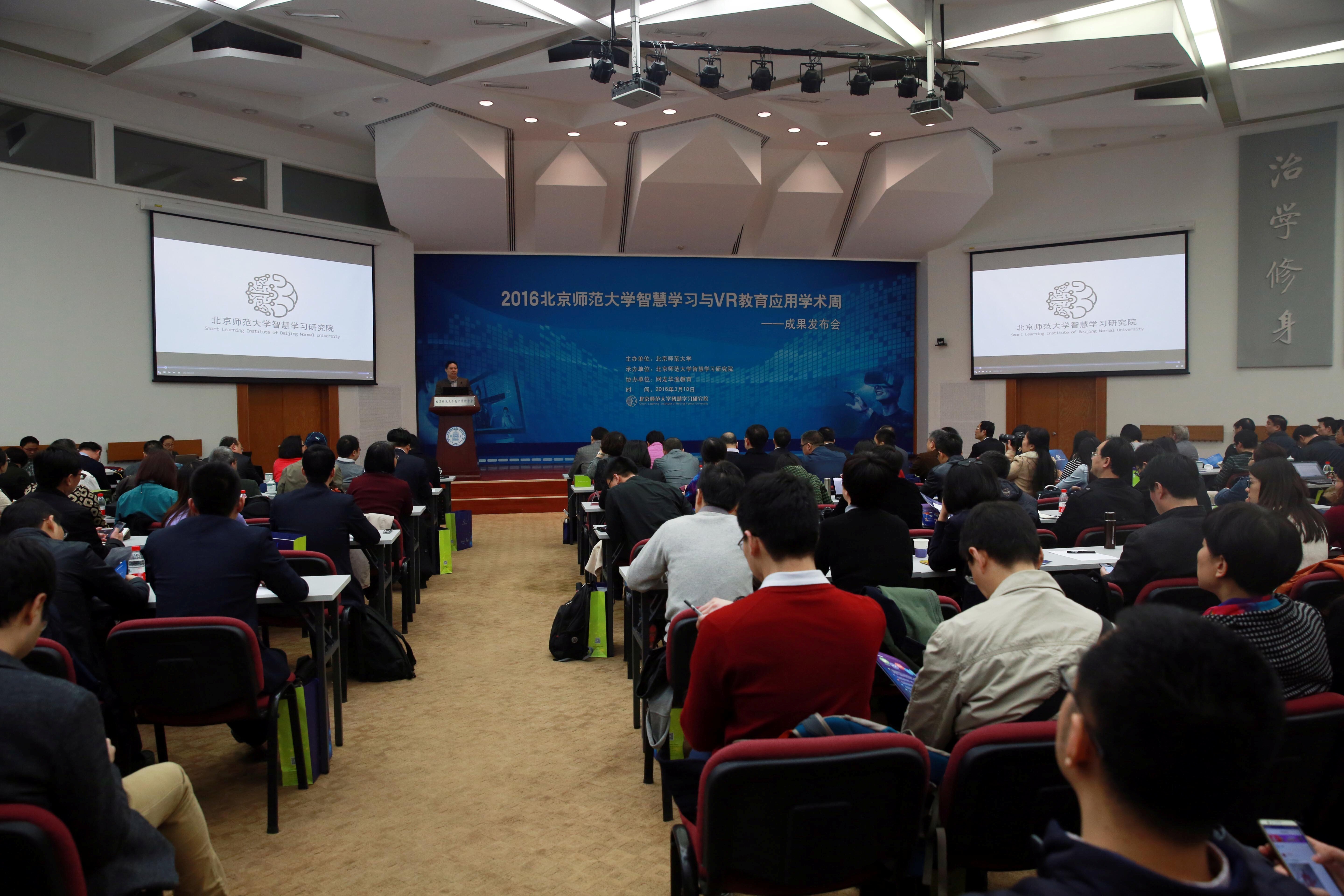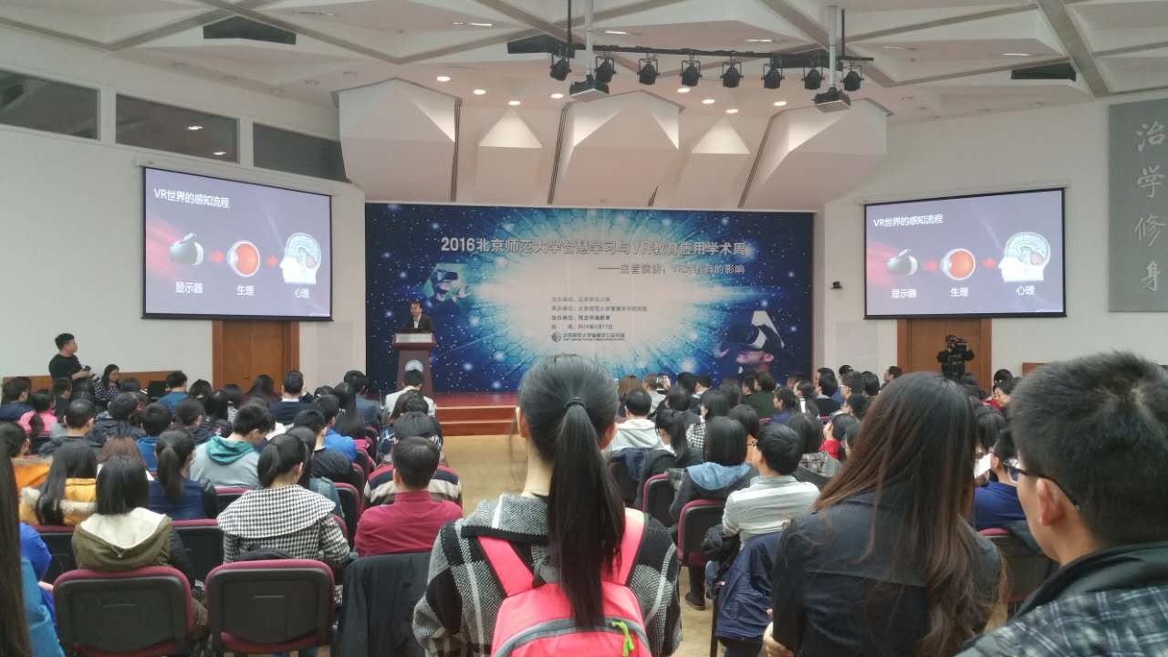 2016年3月,为加强学术交流、展示“产学研”结合的协同创新成果,“北京师范大学智慧学习与VR教育应用学术周”启动,来自政府部门、学校、研究机构、行业协会、企业和媒体等业界人士和广大师生参加了成果发布会、成果展览及产品体验、系列学术研讨活动。