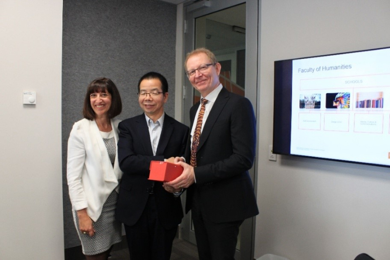 次日,黄院长一行与科廷大学副校长Alan Dench教授和教育学院院长Lina Pelliccione副教授共同探讨了未来可开展的三个合作方向: 1) 提供双方教师与学生出国访学的机会;2) 举办国际会议 (如,ICSLE智慧学习环境国际研讨会);3)推动国际项目合作:a)与Demetrios Sampson教授协同开展国际MOOC课程项目;b)共同在School Improvement或以STEM教育为主题的杂志上共同发表英文论文、国际报告及英文书籍;c) 基于Professional Learning Hub项目共同举办学校领导力培训班;d) 与网龙公司合作共同开发基于VR的Smart City项目;e) 协同规划汉语教学项目等。