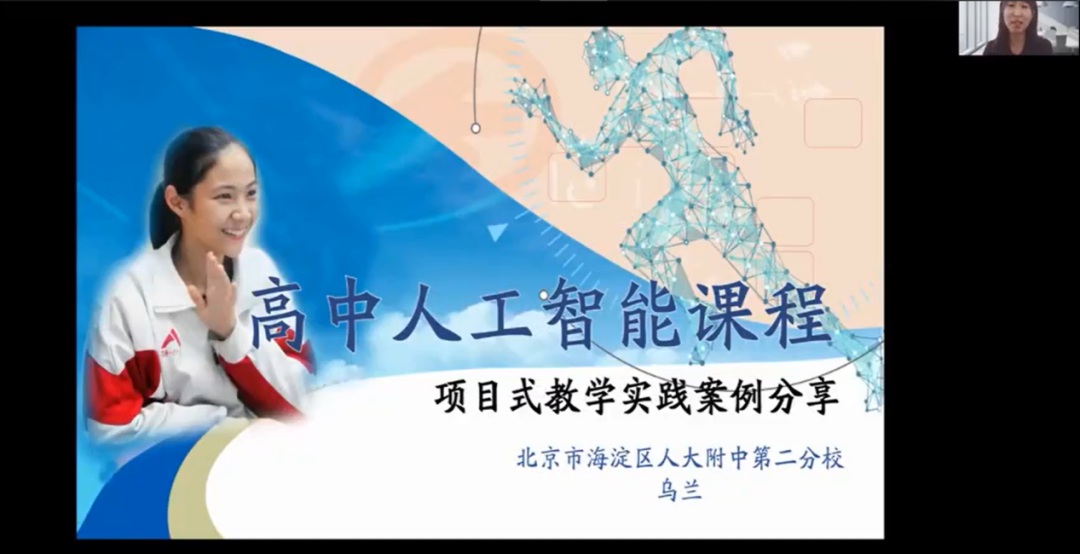 乌兰老师聚焦高中阶段的人工智能课程项目式教学实践案例进行分享,对人工智能课程中的《智能陪伴巧实践》项目、人工智能跨学科融合教学课程中的《穿越千年来看你》项目进行了系统的介绍,从实践角度探讨了在高中阶段如何开展人工智能课程教学的问题。