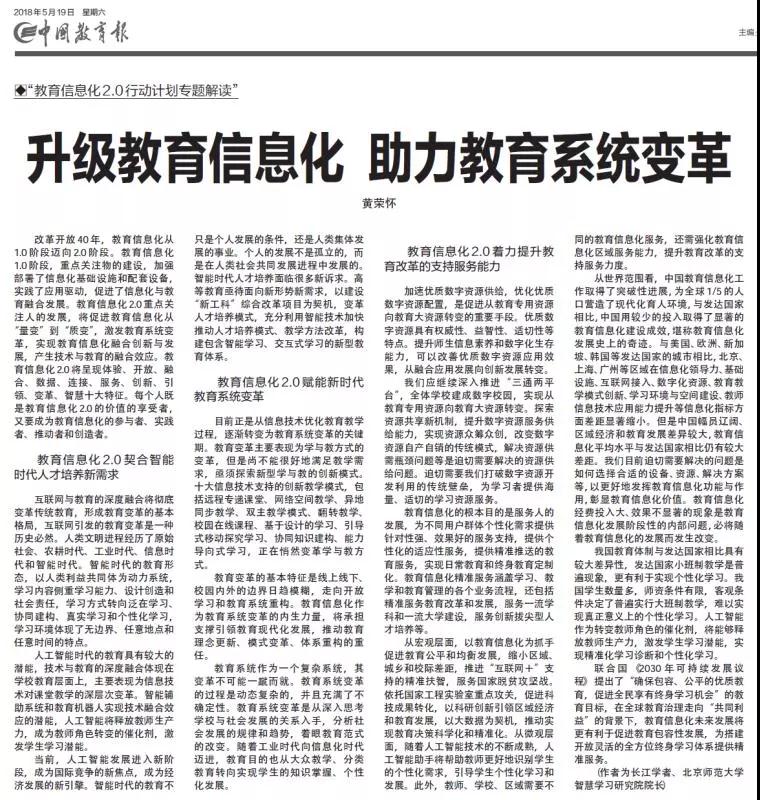 教育变革的基本特征是线上线下、校园内外的边界日趋模糊,走向开放学习和教育系统重构。教育信息化作为教育系统变革的内生力量,将承担支撑引领教育现代化发展,推动教育理念更新、模式变革、体系重构的重任。