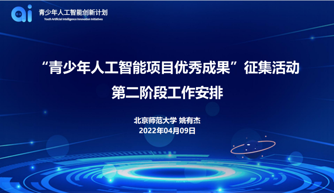随后,姚有杰老师对“青少年人工智能项目优秀成果”征集活动第二阶工作安排进行了说明。