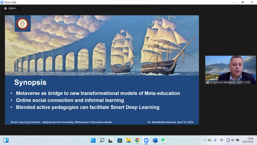 Stylianos Mystakidis教授带来题为“工业4.0时代下,元宇宙赋能的STEM智慧教育”的讲座。讲座以工业4.0时代下的技术革新开篇,介绍了此时代背景下有关STEM教育的创新学习方式,解释了什么是元宇宙以及元宇宙在STEM教育转型中的重要性,并提出应用元宇宙技术的伦理道德问题,最后指出元宇宙如何赋能智慧学习,深度学习,以及VR/AR中的有效学习。
