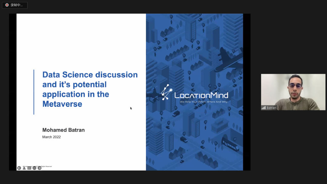 Mohamed Batran研究员带来题为“数据科学讨论及其在元宇宙中的应用”的讲座。Mohamed Batran研究员分享了自己数据科学的工作经验,进而通过多个不同案例深度讲解了元宇宙技术如何提升人们的沉浸式体验,最后提出了数据安全的重要性。