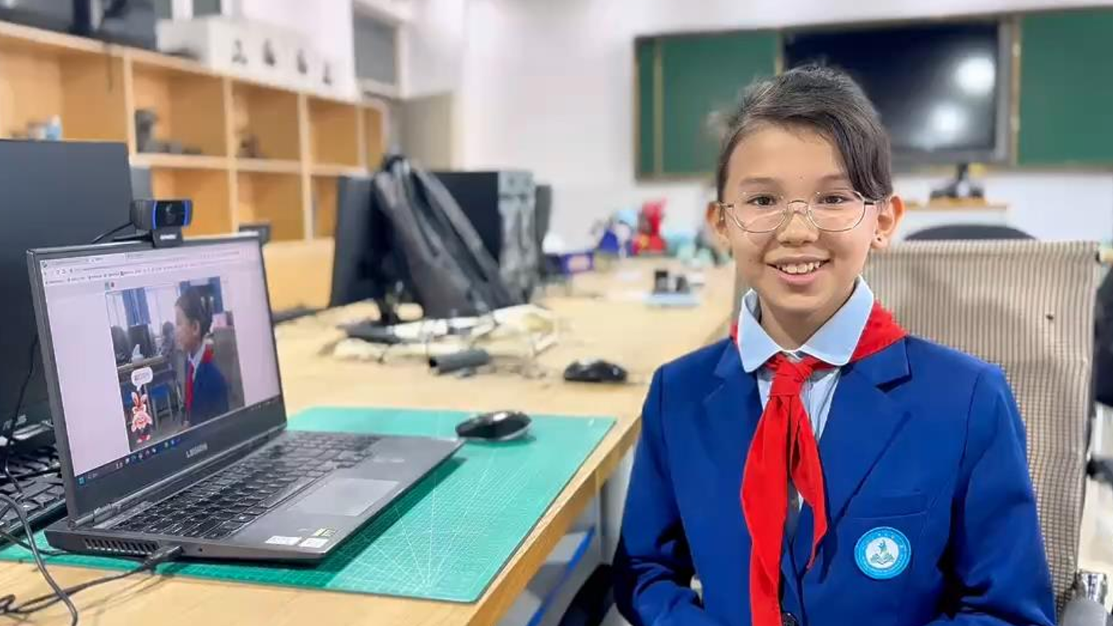 通过浦育平台,学生不写代码就可以训练模型,并用于手势识别、语音识别,并将这些模型应用于实际项目中。例如,新疆的一位小学生利用平台自学训练模型来检测校园内的少先队员是否佩带红领巾。