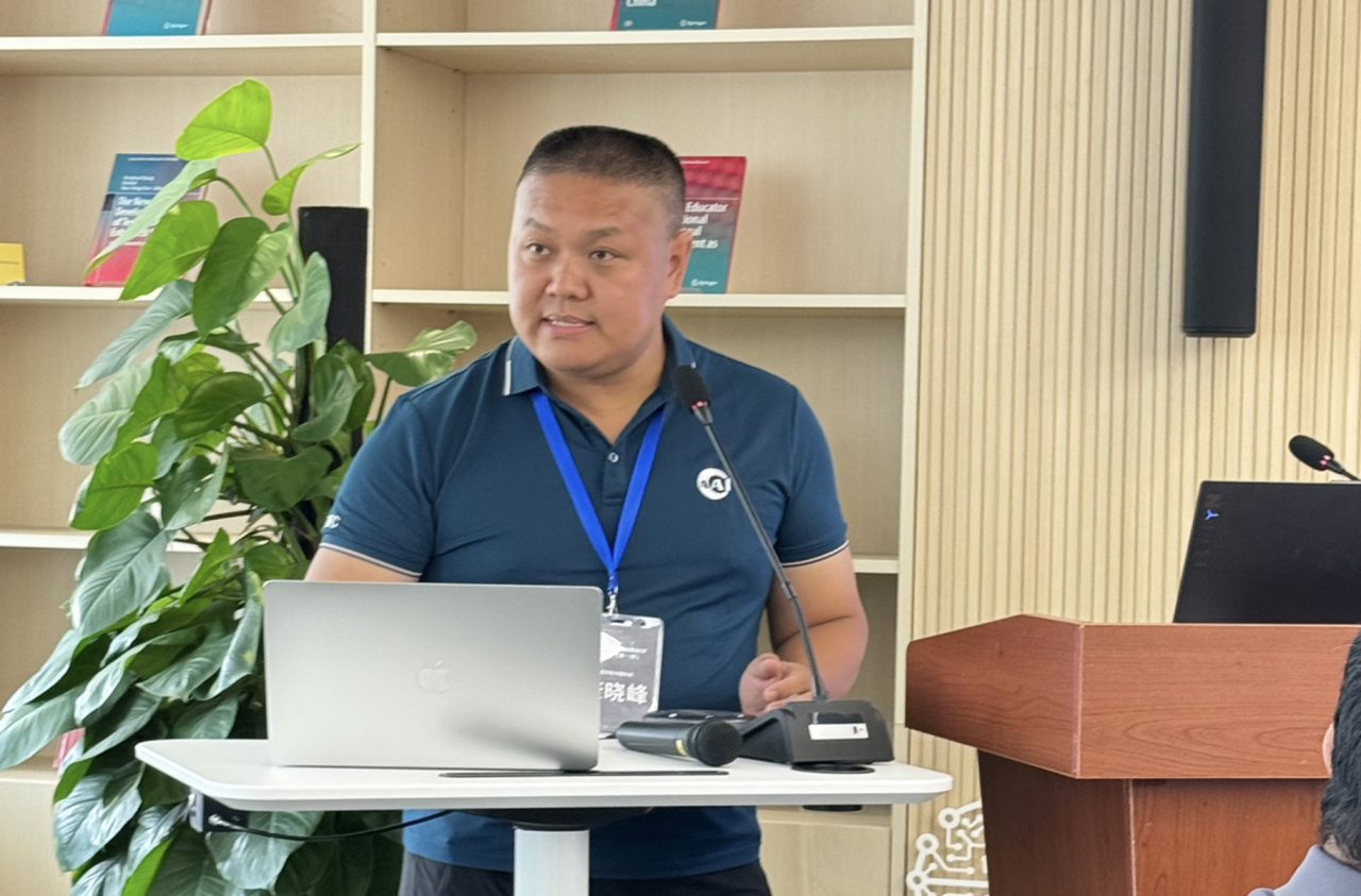 在8月4日上午的活动中,共有两个专家分享和两个优秀案例分享。朱立新老师报告的主题是:AI教学工具赋能教师效率提升。朱老师介绍了人工智能在赋能教师教学及学生个性化学习中的实际案例,帮助教师理解技术和工具在具体使用中的技巧和注意事项,并对人工智能助推教师的专业发展提出了建议。