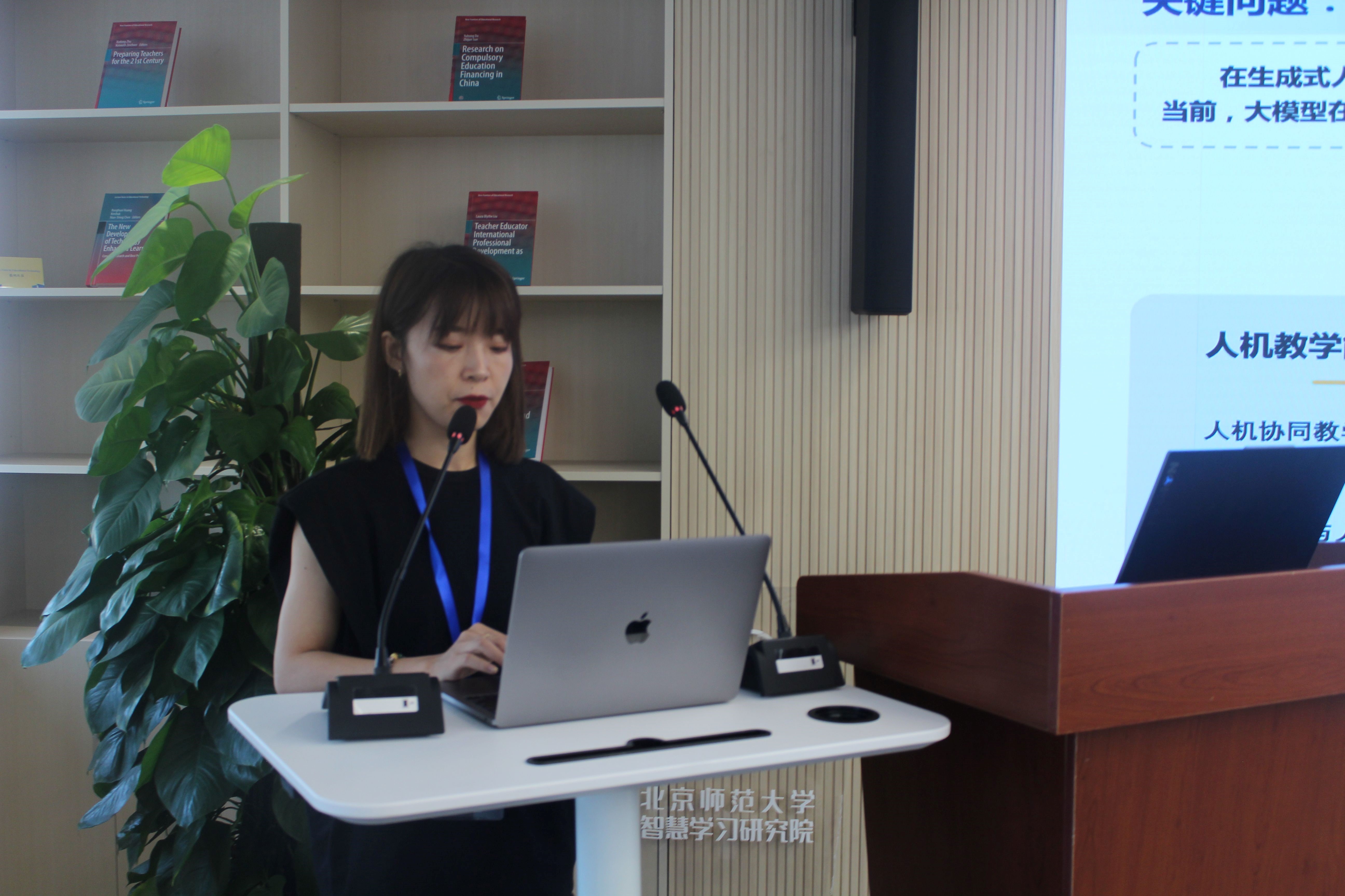 达婷老师报告的主题是:面向人机协同教学大模型能力的评估和局限。达婷老师介绍了大模型在教育中的应用尚处于起步阶段,但已经引起了广泛关注,特别是在人机协同教学实践方面的新思考。围绕以下问题进行探究:大模型测评在教育场景中的研究现状如何?如何定义教育场景的能力维度?大模型在教育中的实际能力如何?与人类教师的能力差异如何?如何基于人机各自能力的优势区合理分配教育任务?面向人机协同教学的大模型在不同学科的局限有哪些?