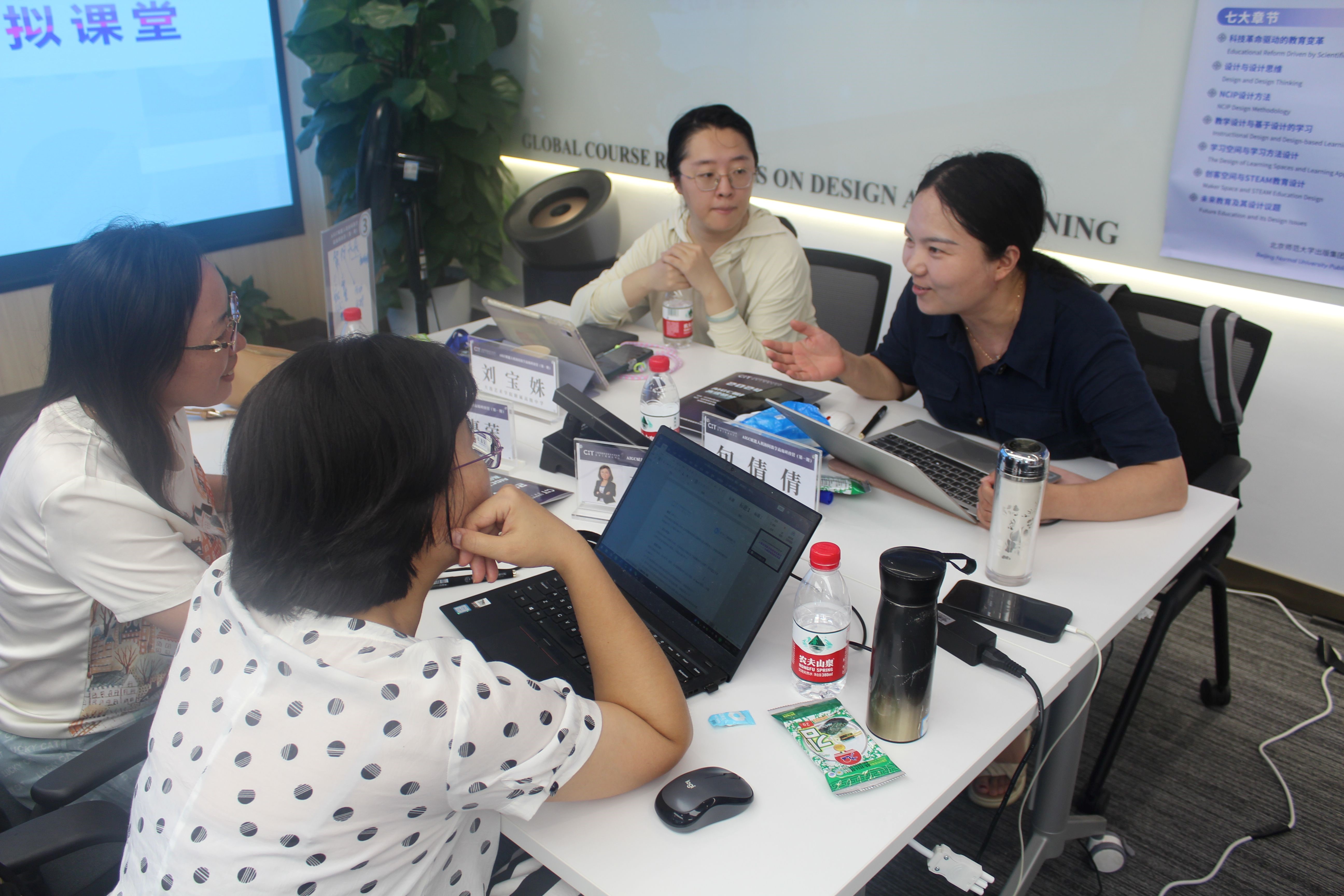 8月4日下午,在研修营中,每个团队都积极参与了人机协同教学创新模式的实战设计活动。不同学科与背景的老师跨界合作,他们首先通过头脑风暴选定了各自的小组主题,然后共同探索了教育模式下的创新点,致力于实现大语言模型在人机协同教学中的核心理念。他们一同设计了创新模拟课堂,并详细规划了每个教学环节如何实现人机协同的交互。