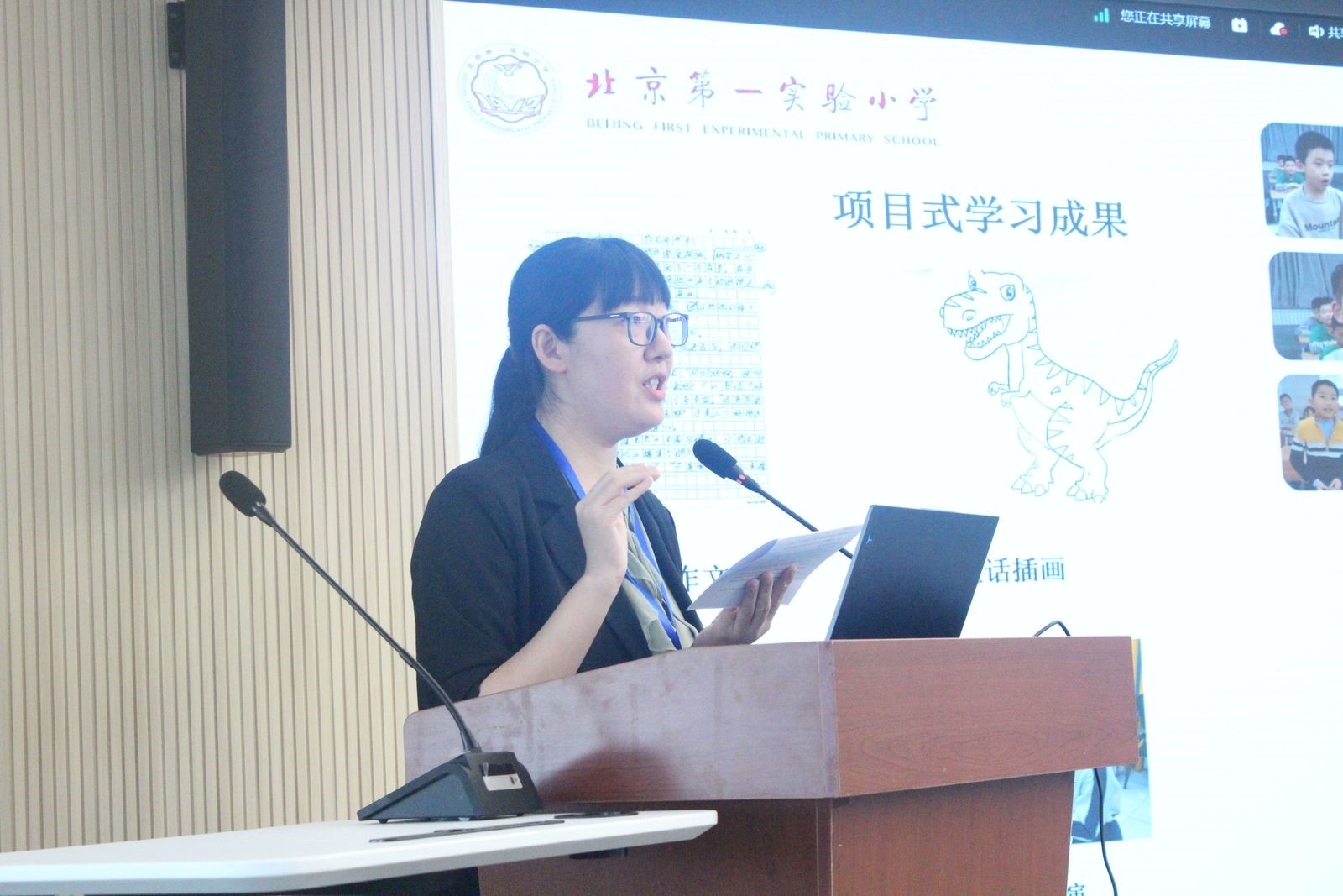 北京第一实验小学祝洁老师分享的主题是:小学语文、信息跨学科的综合实践。祝老师以五年级科学上册灭绝的远古动物这一课为例,分享了人机协同教学在实际课堂教学中的应用。讲述了如何通过人机协同教学让学生编写童话故事这一具体案例,最后介绍了基于数字画像的学习评价体系。