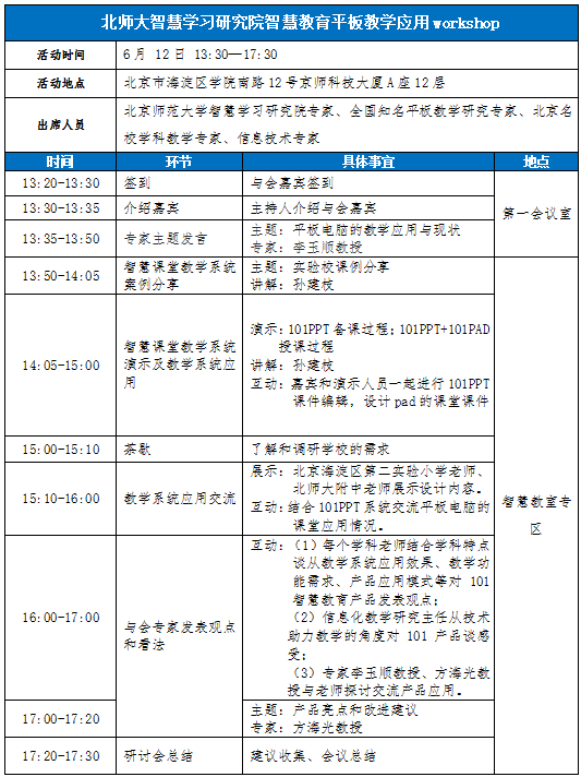 北京师范大学智慧学习研究院“智慧教育平板教学应用workshop”——暨101智慧教育产品教学应用研讨会