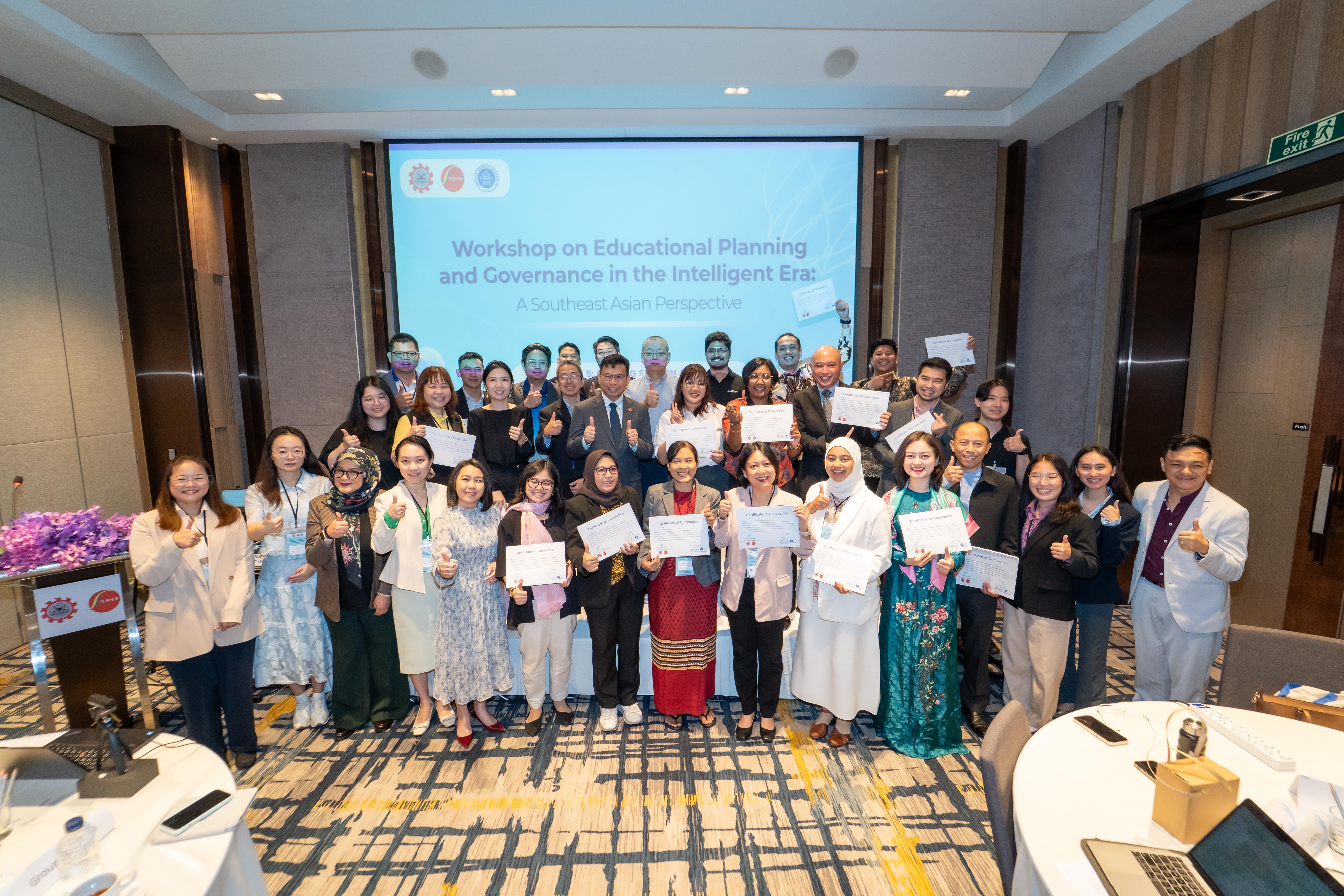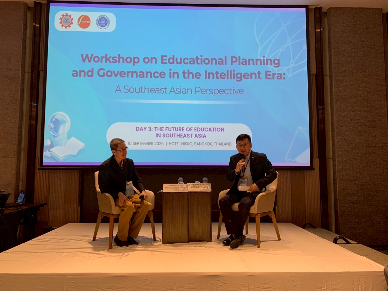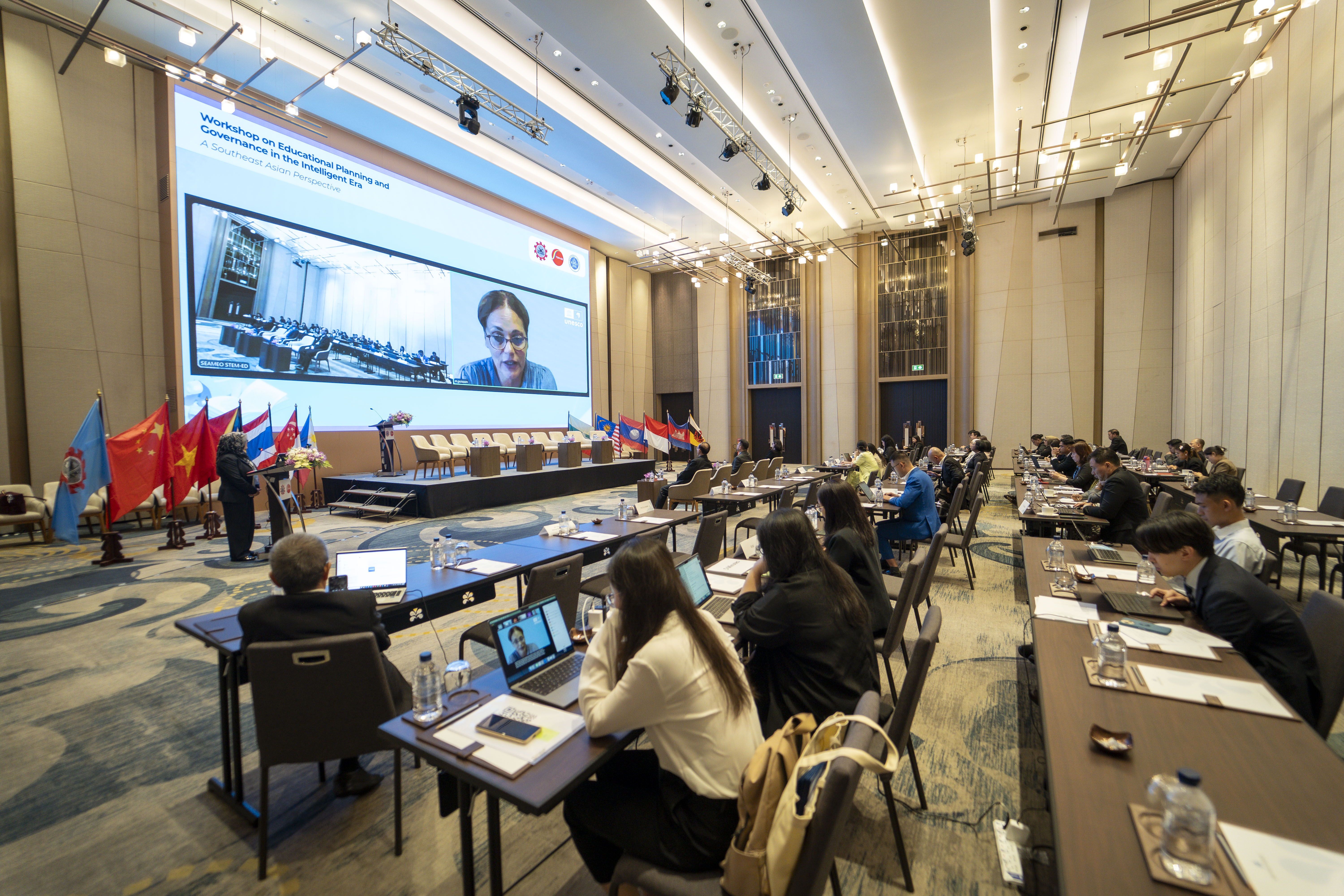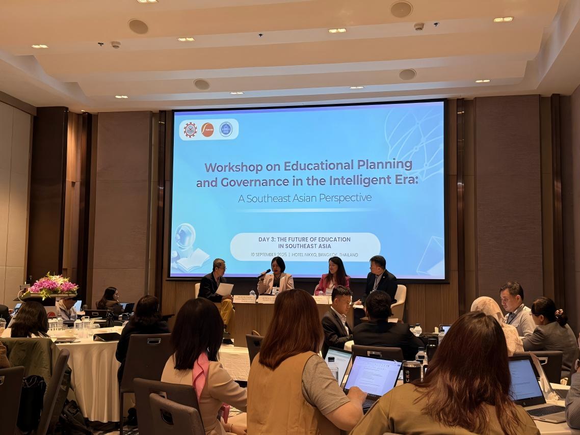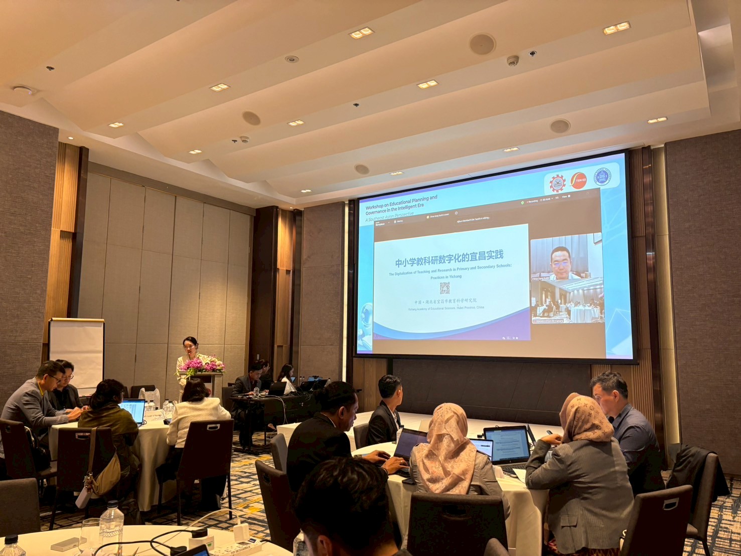 2025年是“十四五”规划收官之年,也是“十五五”规划谋篇布局的关键一年。作为中国“智慧教育元年”,今年标志着教育数字化进入全面深化的新阶段,也为全球教育加快融合人工智能等新一代技术提供了前所未有的战略机遇。值此重要时期,由北京师范大学与东南亚教育部长组织STEM教育中心(SEAMEO STEM-ED)、联合国教科文组织曼谷办事处(UNESCO Regional Office in Bangkok)、农村教育研究与培训中心(UNESCO INRULED)、人工智能与教育教席(UNESCO Chair on AIED)联合组织的“智能时代的教育规划与治理国际研修班——东南亚专场”于2025年9月8日至12日在泰国曼谷成功举办。本期研修班是“智慧教育”系列培训的第二期,也是继1月份在中国北京举办第一期研修班后首度走向海外的区域专题培训。共吸引来自文莱、柬埔寨、印度尼西亚、老挝、马来西亚、缅甸、菲律宾、新加坡、泰国、东帝汶、越南等11个国家和SEAMEO秘书处及区域中心的25位教育部官员与代表参加。