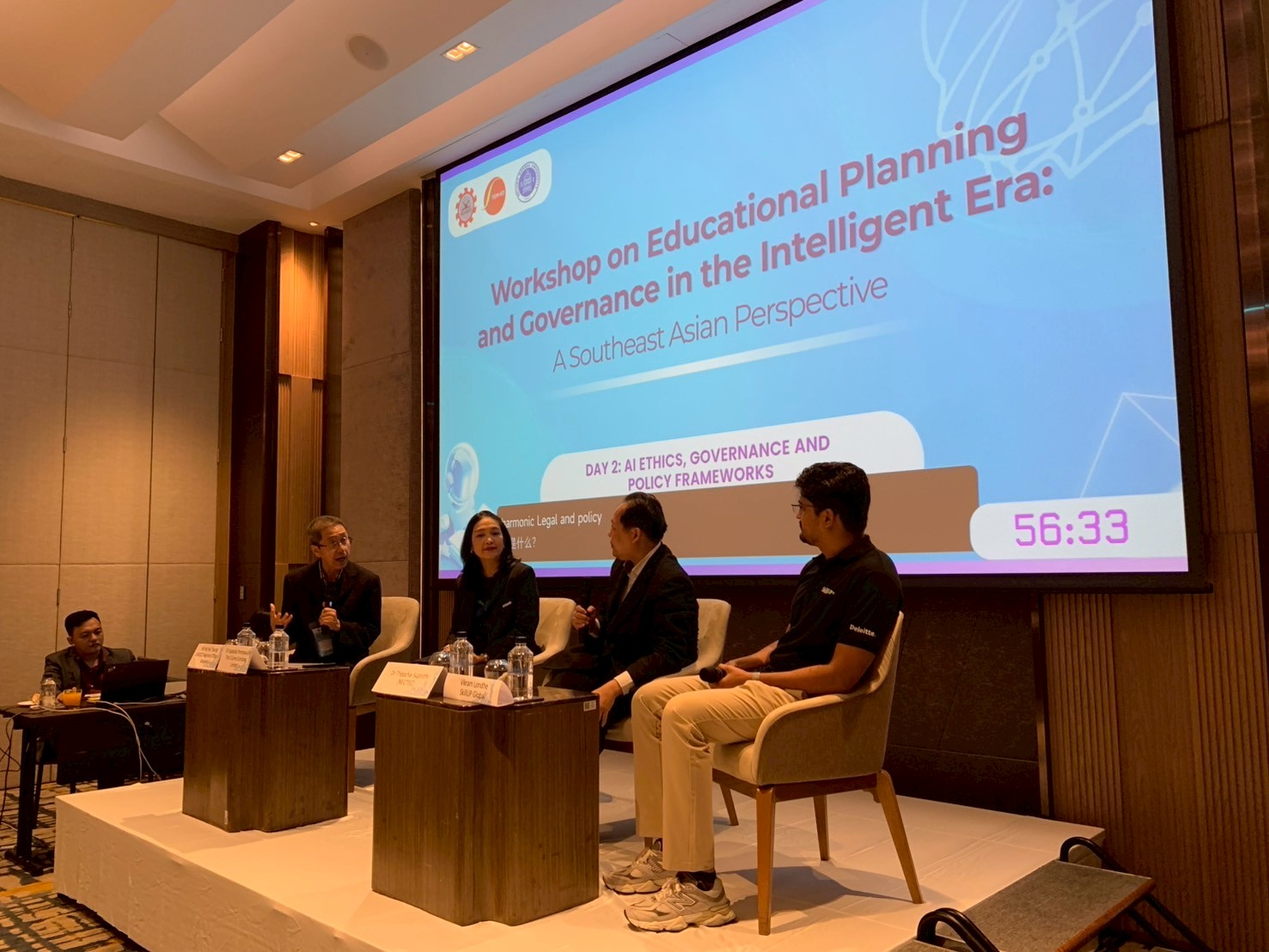 在“人工智能应用中的法律与政策考量”圆桌讨论环节,泰国国家电子与计算机技术中心主任特普柴·苏普尼提(Thepchai Supnithi)系统阐述了泰国在人工智能法律框架与政策方向的战略布局,并指出泰国通过建设开源基础设施、国家数据库及监管沙盒等机制,推动AI教育政策落地,需加强生成式AI素养培养,并推动教育部与高教部的协作,以构建多层次支持体系。苏帕蒂达·普隆帕育克(Supatida Prompayuck)重点阐述了私营企业与政府合作在推动AI教育应用及保障数据隐私方面的关键作用,在生成式AI的普及速度远超以往技术的同时,AI工具需结合本土文化与教育场景进行适配,通过Gemini Academy等案例论证了AI作为教学辅助工具赋能教师,但不可替代其角色,教师始终是实现家校互动和AI可持续应用的核心。在探讨东南亚地区人工智能教育项目的挑战与机遇时,维克拉姆·隆德(Vikram Londhe)指出,实施AI教学需采取适应性强且结构化的方法,以融合快速迭代的AI技术,他强调应为学生提供易于掌握的工具,在鼓励实践的同时培养批判思维与伦理意识,并警惕过度依赖AI可能削弱学生的基础思维能力,同时克服语言障碍和数据不足问题。