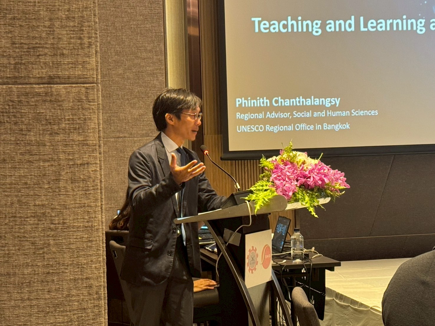 联合国教科文组织曼谷办事处社会科学与人文科学区域顾问丰尼特·占塔朗西(Phinith Chanthalangsy)作主旨演讲