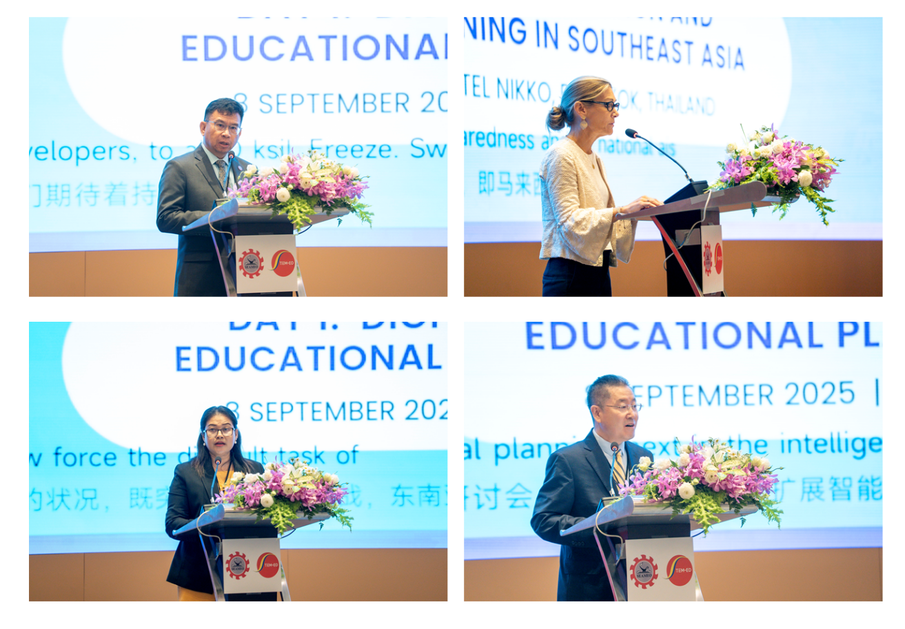 在开幕致辞中,泰国教育部国际合作局局长奇特拉拉达·查尼亚姆(Chitralada Chanyaem),联合国教科文组织曼谷区域办事处副主任兼教育处处长玛丽娜·帕特里埃(Marina Patrier),联合国教科文组织国际农村教育研究与培训中心主任、北京师范大学校务委员会副主任周作宇,东南亚教育部长组织STEM教育中心主任克里萨猜·宋萨曼(Kritsachai Somsaman)致开幕词。各方一致认可人工智能在教育领域的重要性,以可持续发展目标4(SDG4)为指引,逐步实现从理论研究向实践应用的转型,助力教学创新的同时警惕其潜在风险,通过具有包容性与公平性的人工智能教育应用,保障优质教育资源供给,缩小数字鸿沟。