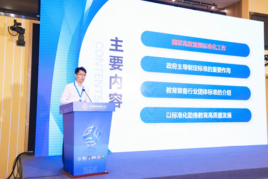 中国教育装备行业协会技术标准部副主任许永康阐述了我国教育领域国家标准、行业标准及团体标准的建设情况,以及国家标准化改革以来,教育装备行业团体标准的制定思路,并明确了标准化在促进义务教育优质均衡发展和教育高质量发展中的重要作用。