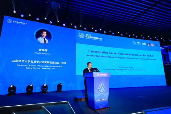 8月20日,在“2023全球智慧教育大会”闭幕式上,北京师范大学智慧学习研究院联席院长黄荣怀教授代表全球智慧教育合作联盟(GSENet)发布了跨学科的联合研究成果“强化面向教育2030议程的智慧教育战略:教育数字化转型跨学科研究报告”