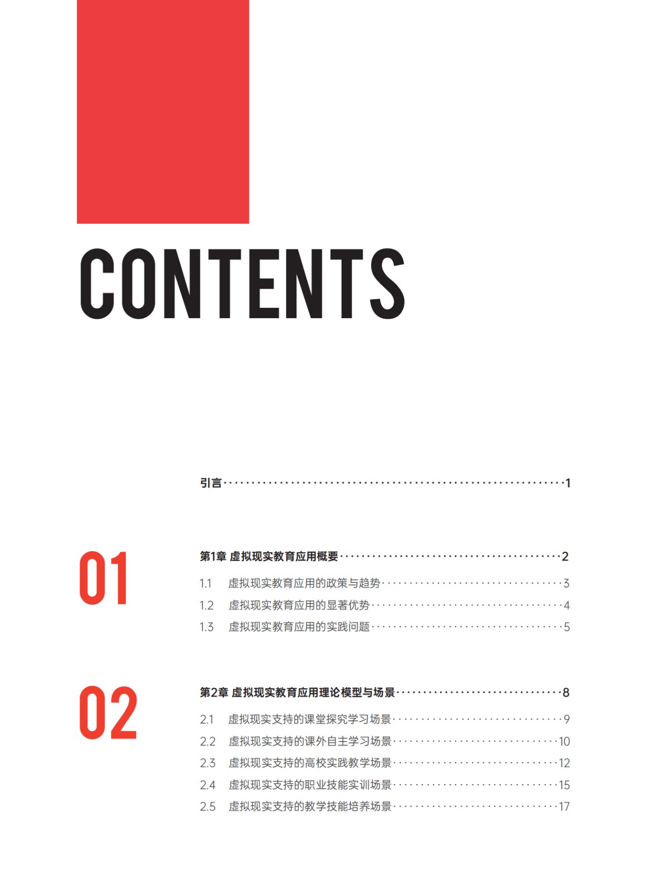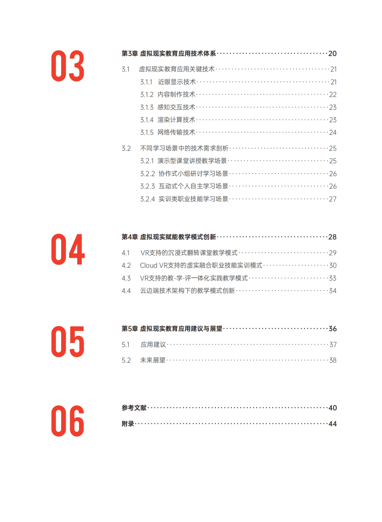 以下为《虚拟现实教育应用白皮书》目录 点击链接 https://cit.bnu.edu.cn/docs//2023-09/7d42bd9321174d3395e5f20609ec28a5.pdf 获取PDF版本
