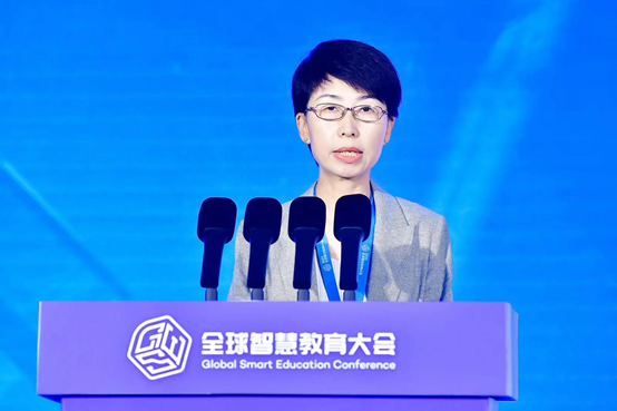 北京市海淀区教委主任杜荣贞从建设、应用、融合、创新四个维度,分享了数字化转型下的海淀智慧教育新生态创建过程及工作成效。