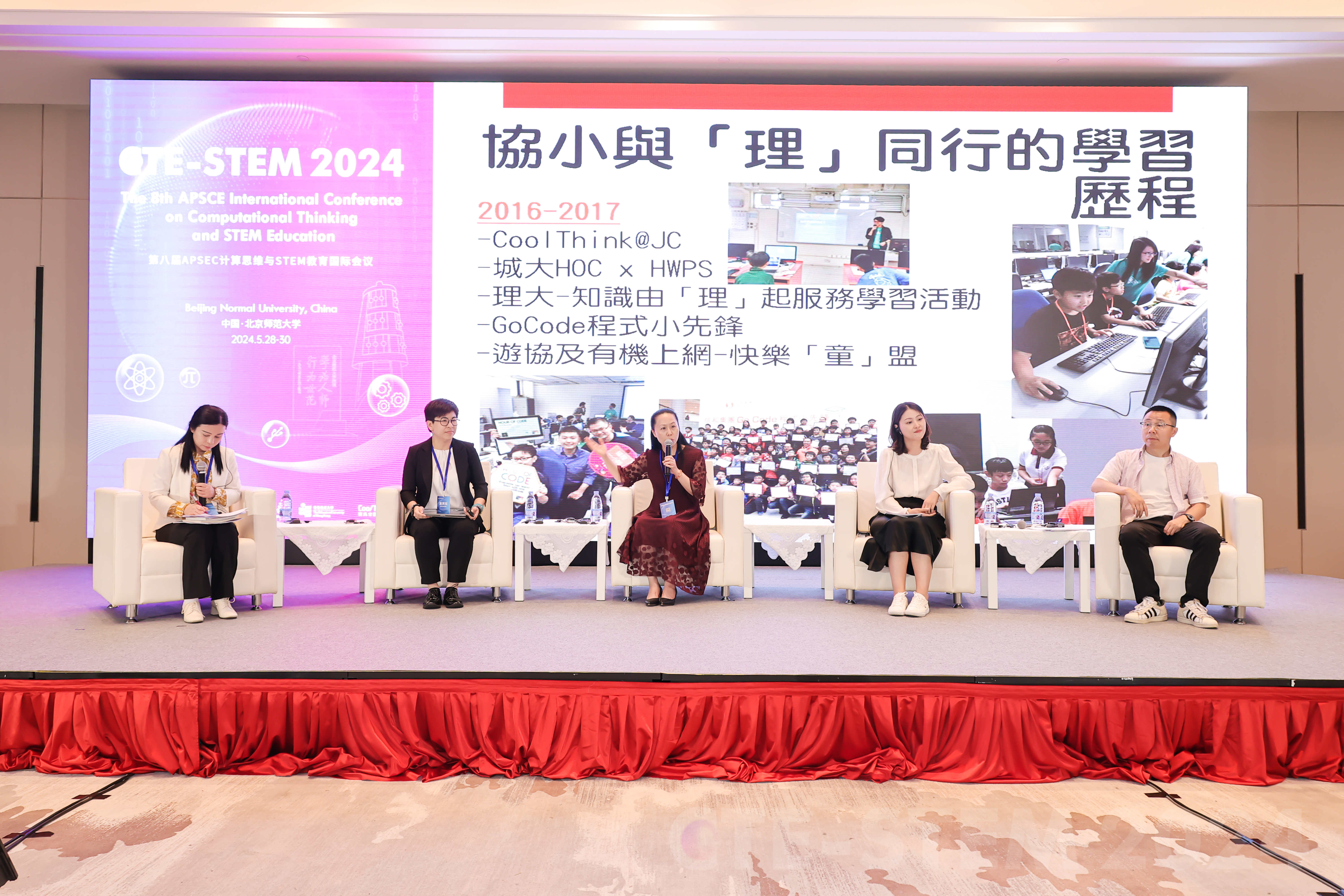 作为大会首日的压轴环节,教师论坛汇聚了众多计算思维和STEM教育领域有接触表现的优秀实践者。他们慷慨分享了关于计算思维培养、STEM 教育、计算机技术的独到见解与实践经验。溢达集团董事长杨敏德女士首先带来了题为“Teachers’ Transformation Story in CoolThink@JC(赛马会计算思维中的教师转型故事)”的演讲,分享了香港赛马会运算思维教育的教师转型案例。