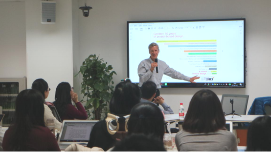 其次,斯坦福大学设计研究中心主任兼ME310课程导师Mark Cutkosky教授和斯坦福大学人工智能、机器人与未来教育中心主任蒋里先生借助大量生动的课程资料,梳理了设计思维的理论脉络和应用路径,分享了该校ME310课程中的独特经验。任教于帕罗奥多某中学的Pamela Cutkosky女士和毕业于斯坦福大学、从事中美教育比较研究的唐女士也积极分享她们的亲身经历和独特见解。专家们拓宽了同学们学习思考的思路,也为研究院在“设计与学习”领域的研究、教学资源开发应用提供了有益借鉴。